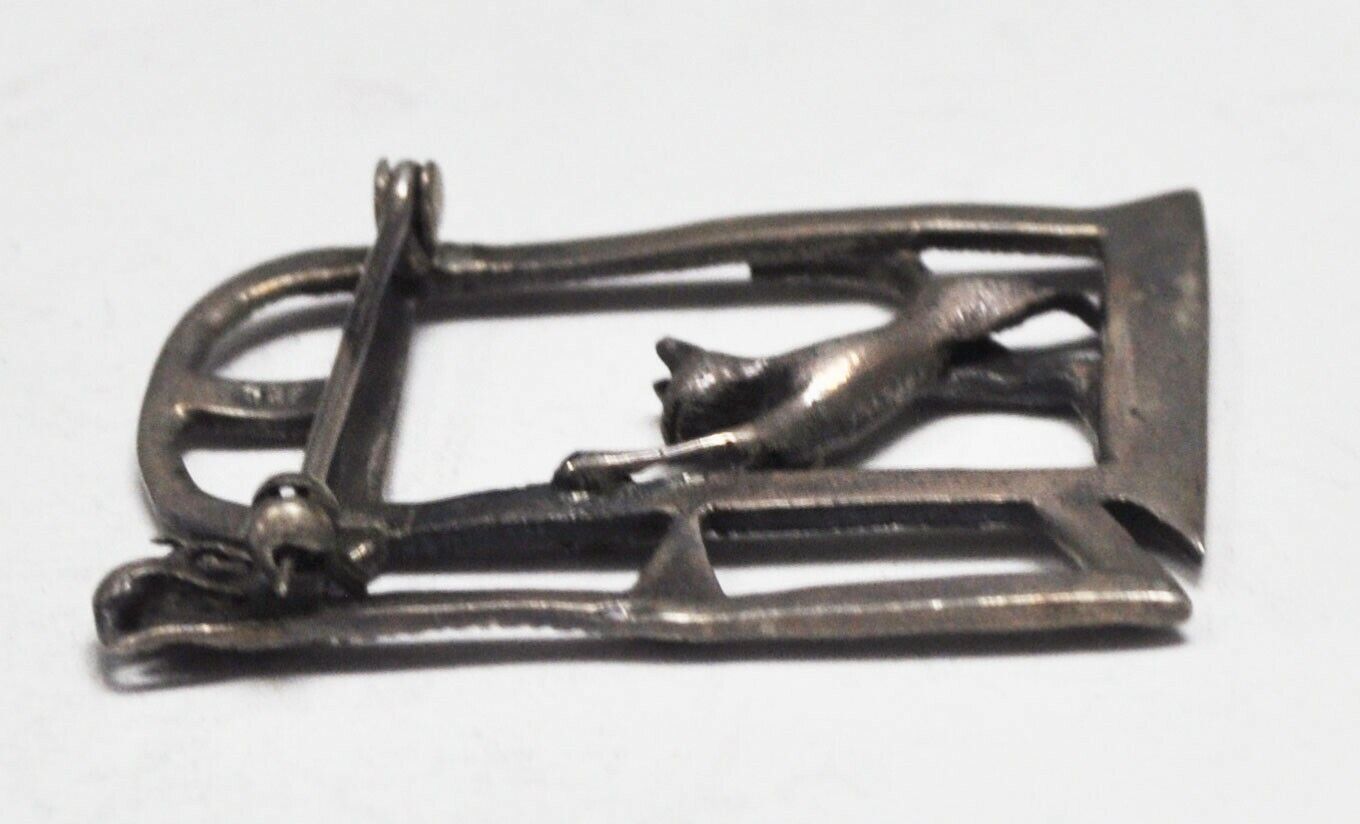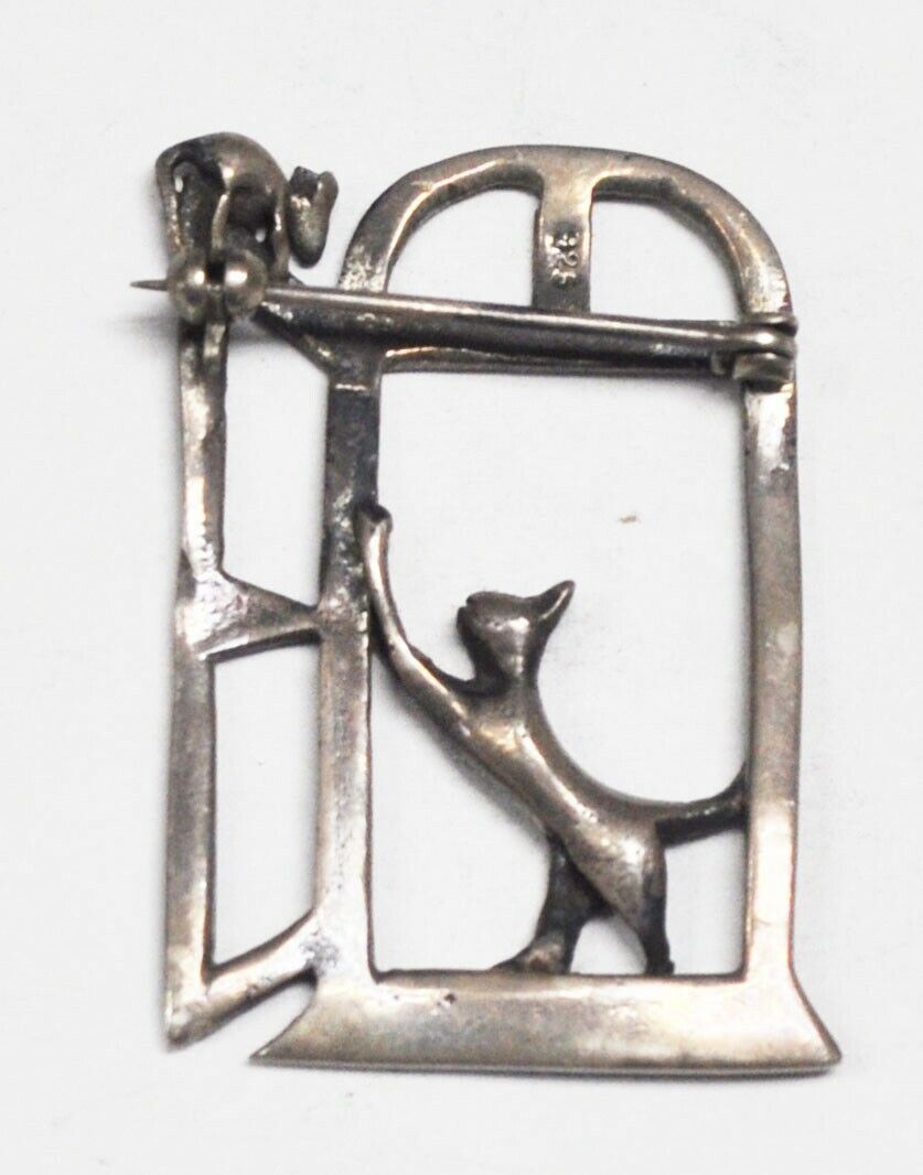 Sterling Silver Cat Chasing Mouse Through Window Brooch Pin 41x29mm