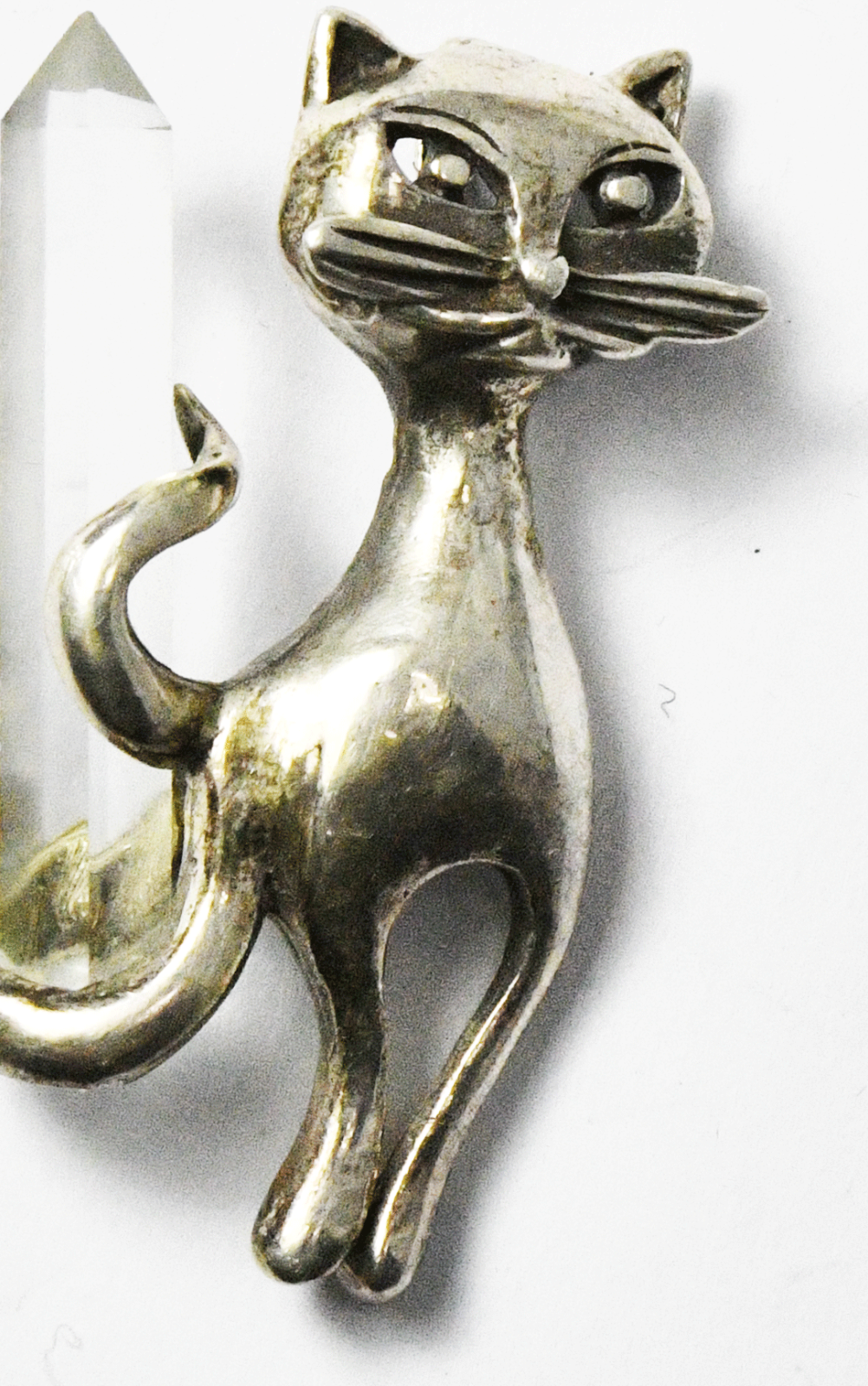 Sterling Silver Cat Quartz Crystal Pendant 39mm x 22mm