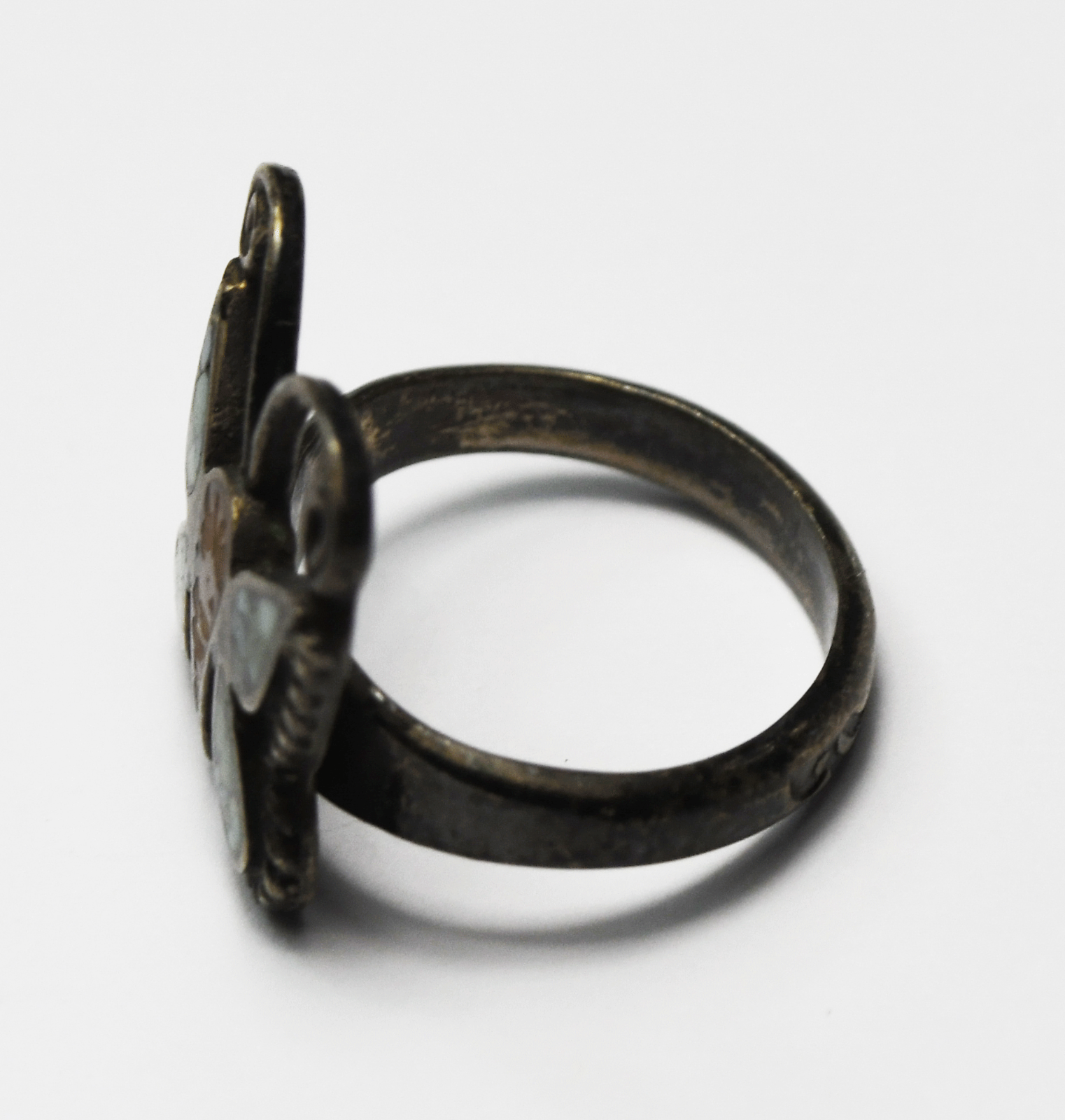 Sterling Silver Chip Inlay Butterfly Coral Turquoise Ring 18mm Size 7 Wave Band