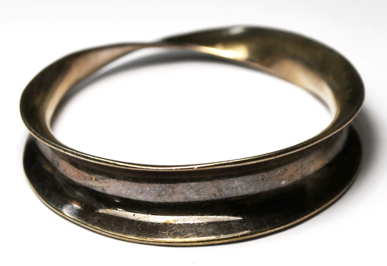 Sterling Silver Concave Mexico Medium Bangle Twist 16mm Bracelet 49g