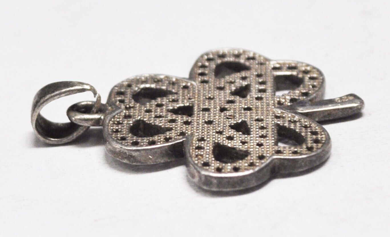 Sterling Silver CZ 3 Three Leaf Clover Pendant 36mm x 26mm