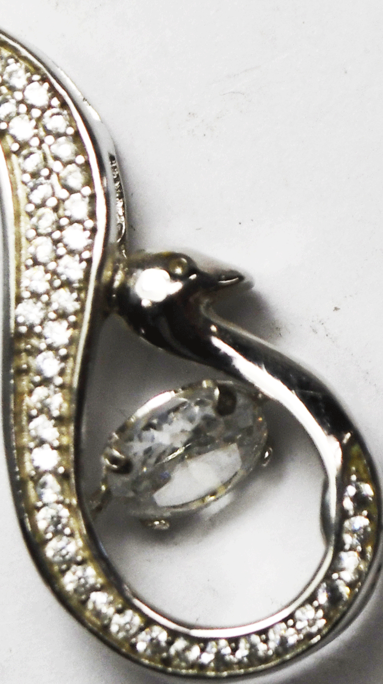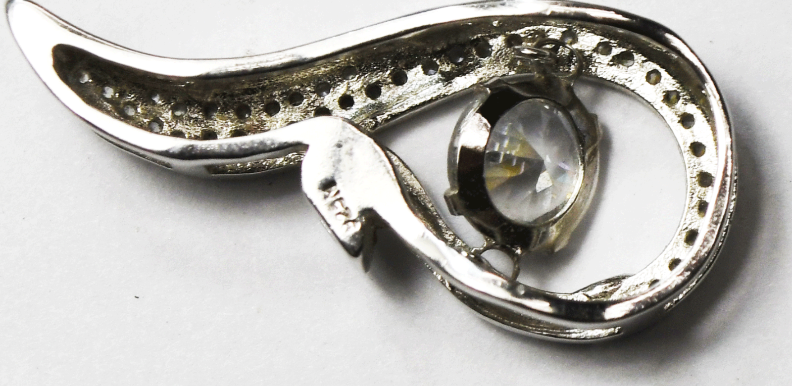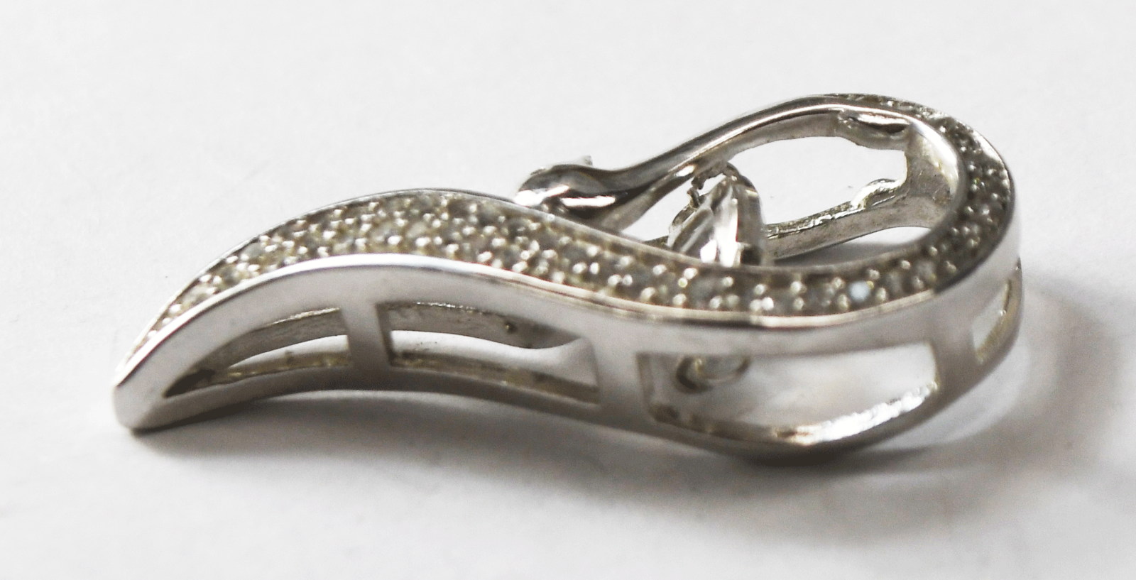 Sterling Silver CZ Spinner Pave Teardrop Pendant 32mm x 13mm