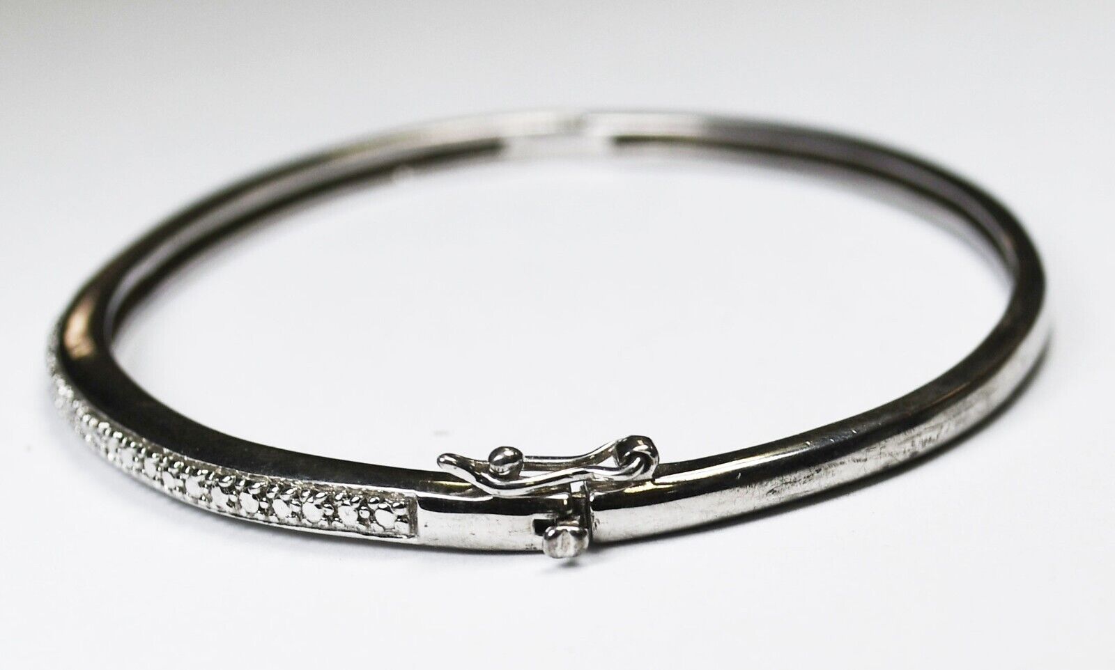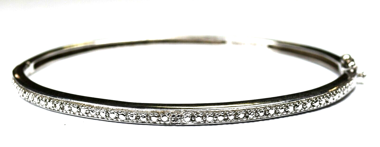 Sterling Silver Diamond Oval Bangle 3mm Bracelet