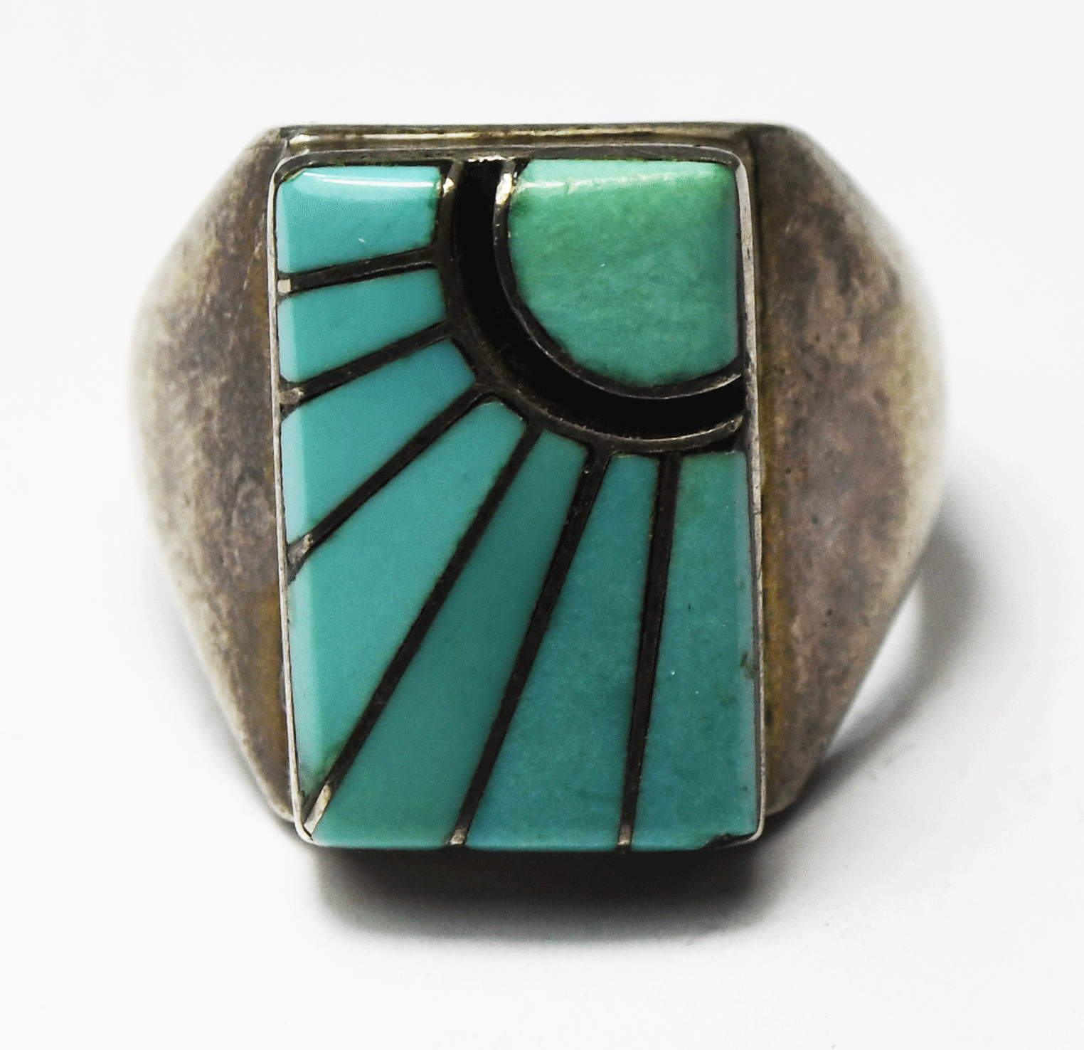 Sterling Silver Dick & Amy Quandelacy Turquoise Inlay Sun Ring 19mm Size 11-1/2