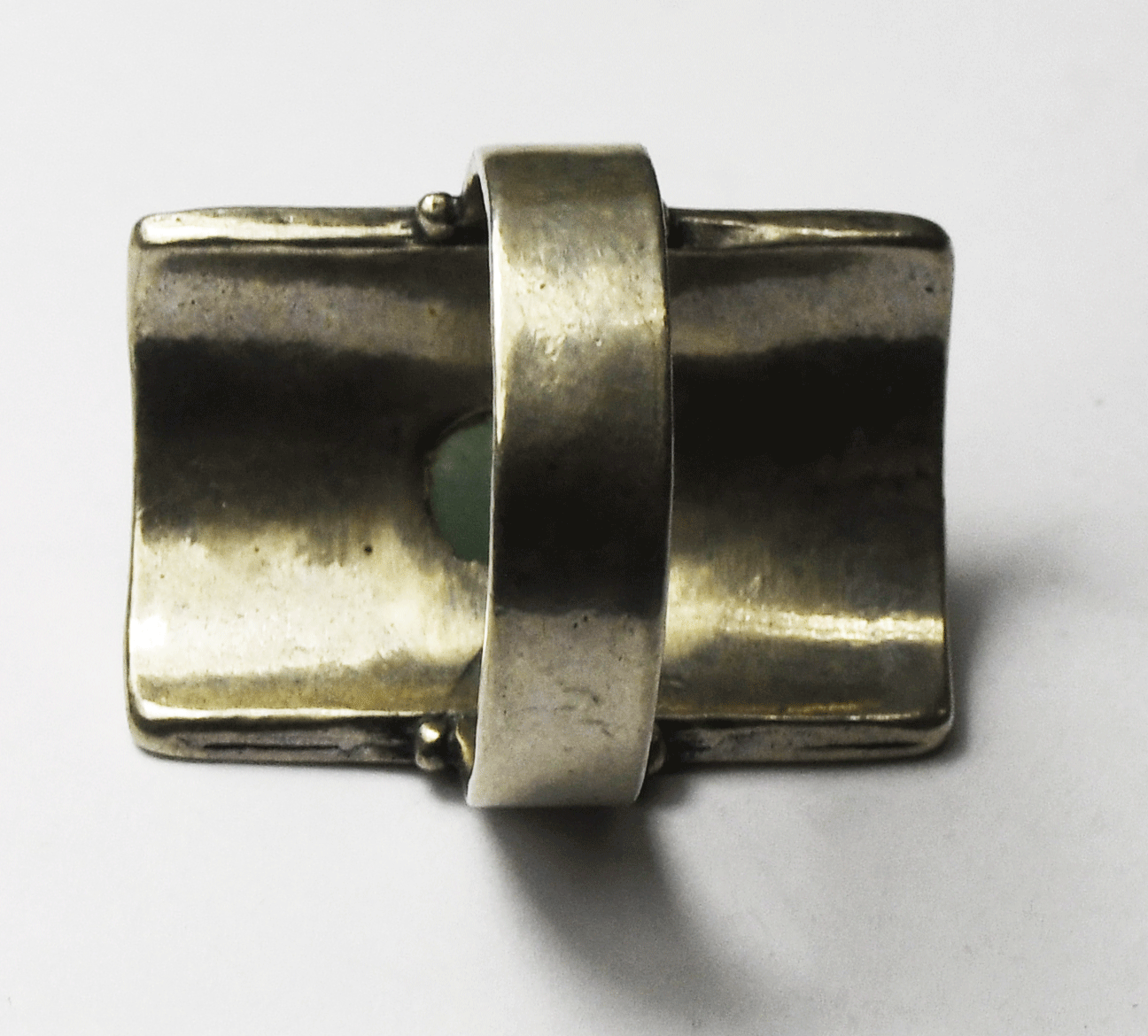 Sterling Silver Didae Oval Green Chalcedony Shield Ring 28mm Size 9