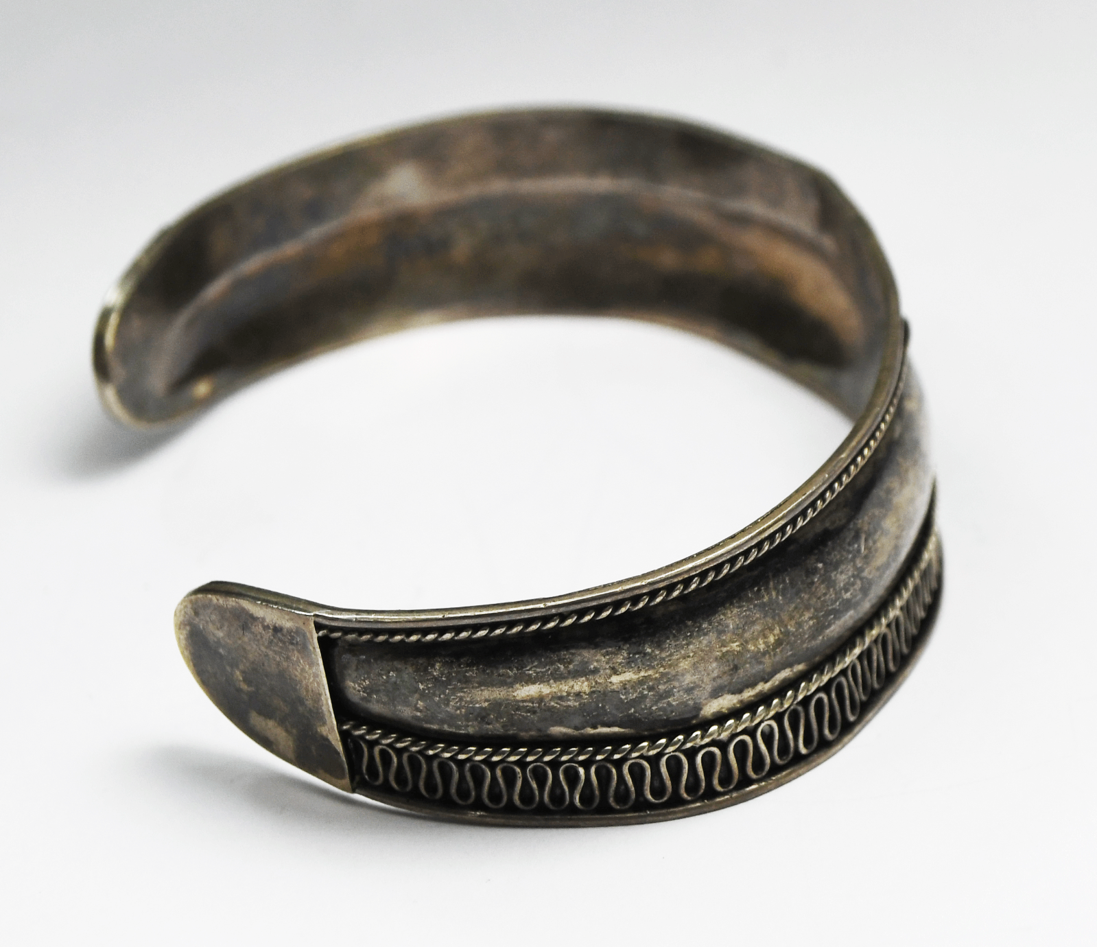 Sterling Silver Dot Squiggle Cuff Bracelet 13mm 7.25" Wrist 13g