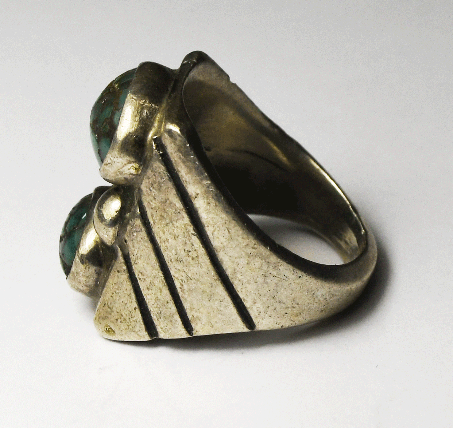 Sterling Silver Double Dark Green Turquoise Stripe Ring 22mm Size 8-1/2