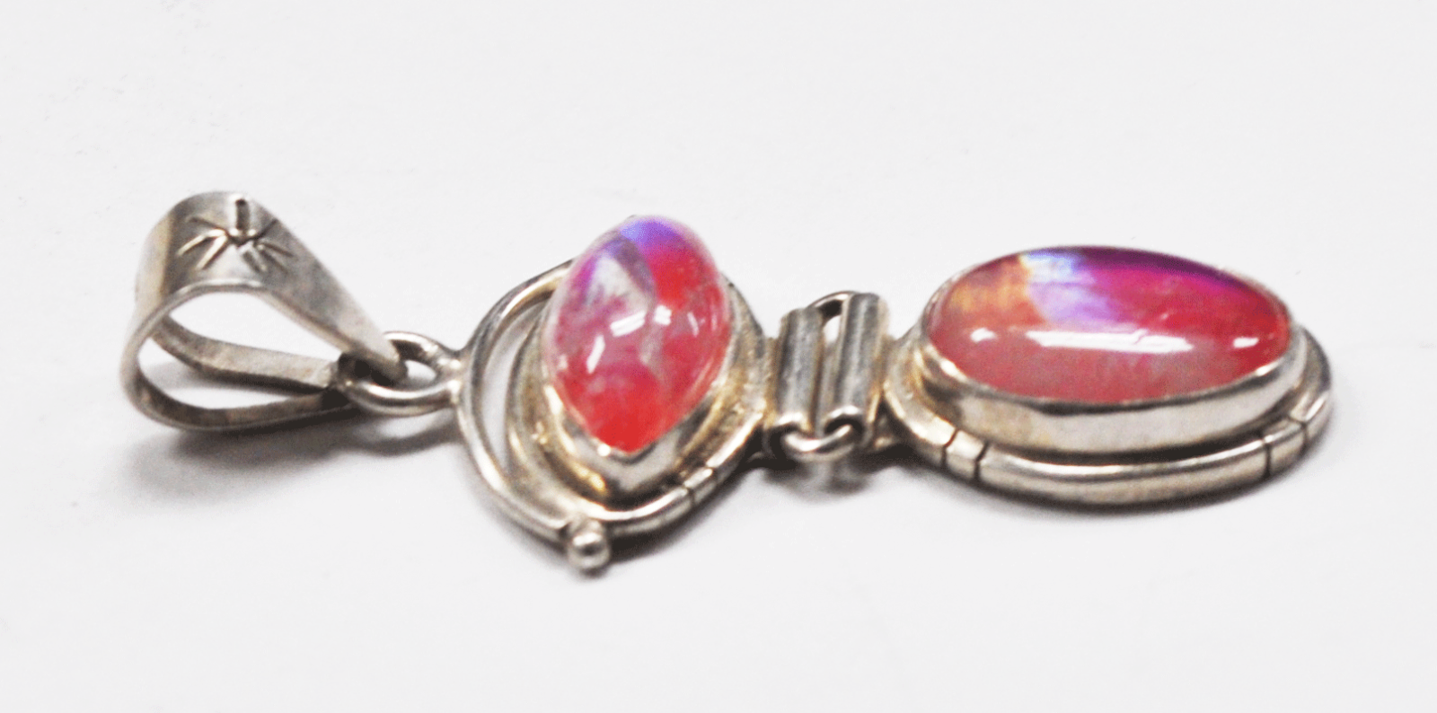 Sterling Silver Double Pink Iridescent Pendant Star Bale 49mm x 22mm