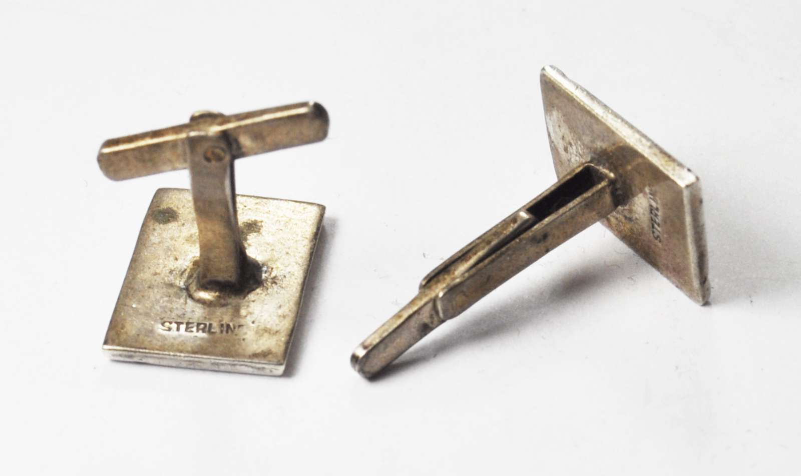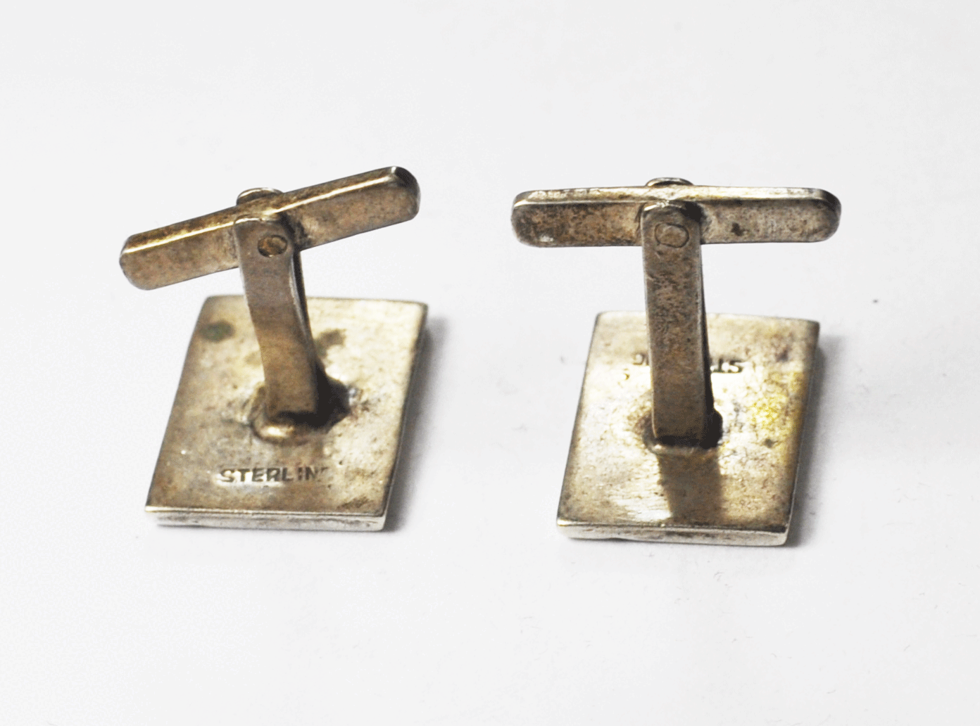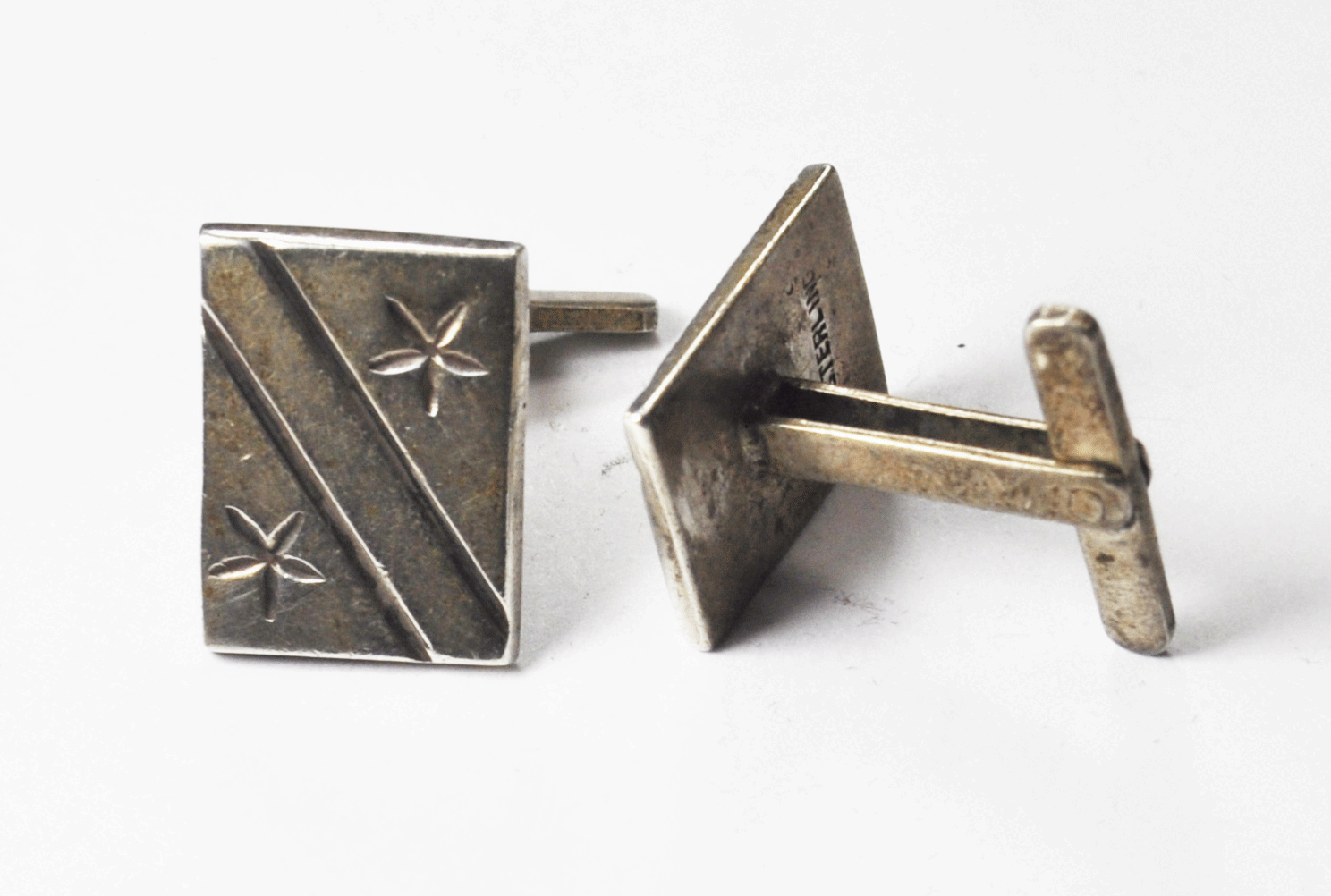 Sterling Silver Double Star & Stripe Rectangle Cufflinke 17mm x 13mm