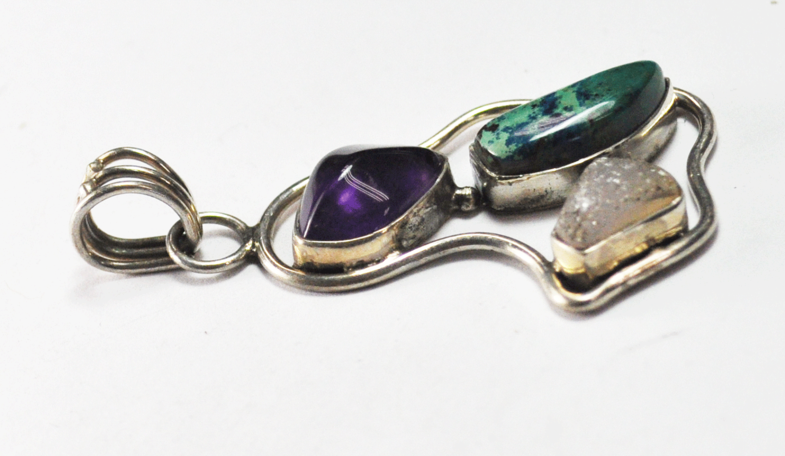 Sterling Silver Druzy Amethyst Turquoise 57mm x 31mm Pendant 7mm Bale