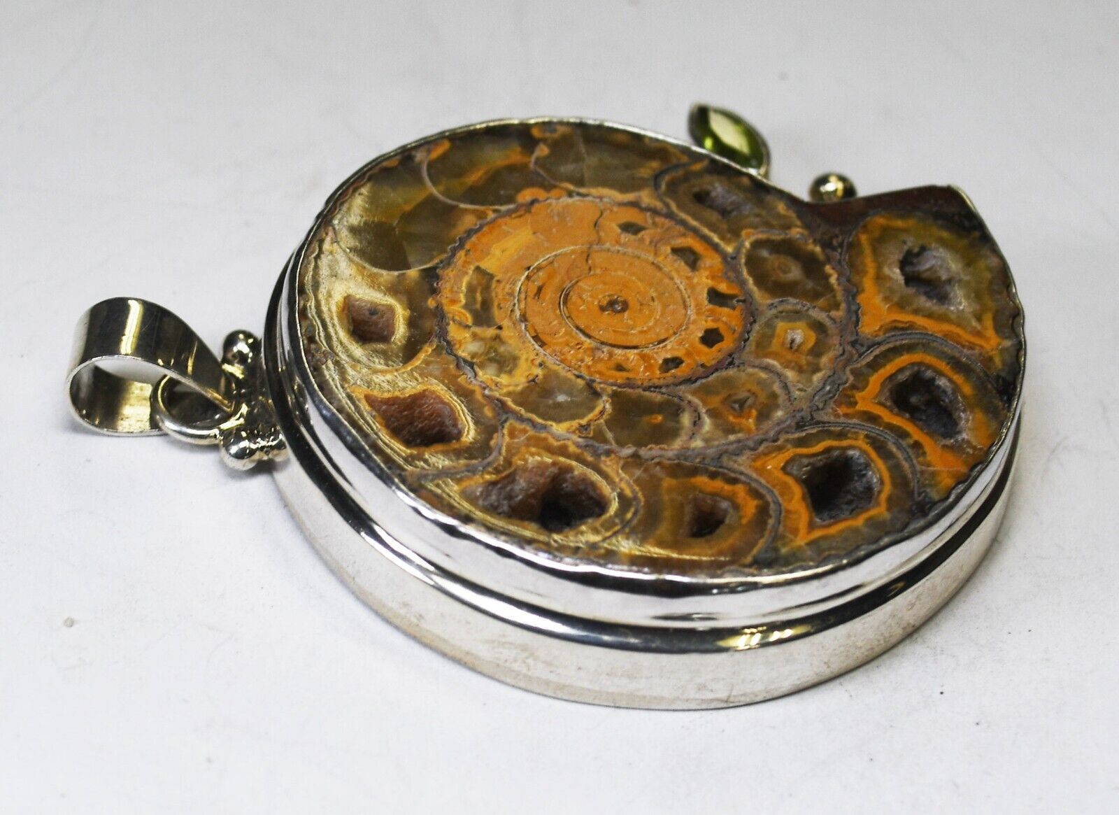 Sterling Silver Druzy Quartz Shell Peridot Pendant 66mm x 54mm