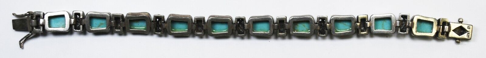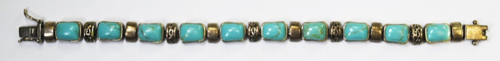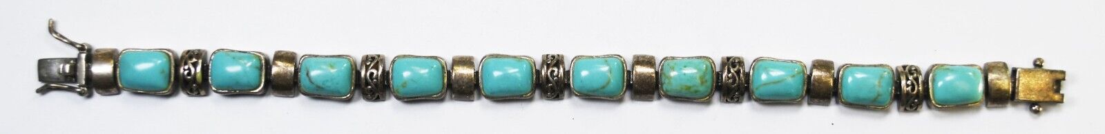 Sterling Silver Dyed Howlite Turquoise Rectangle Filigree Bracelet 9mm 7"