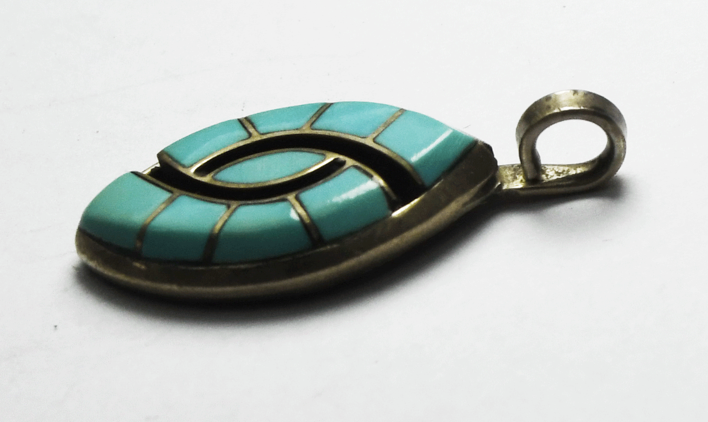 Sterling Silver EB Marquise Turquoise Inlay Pendant 27mm x 12mm