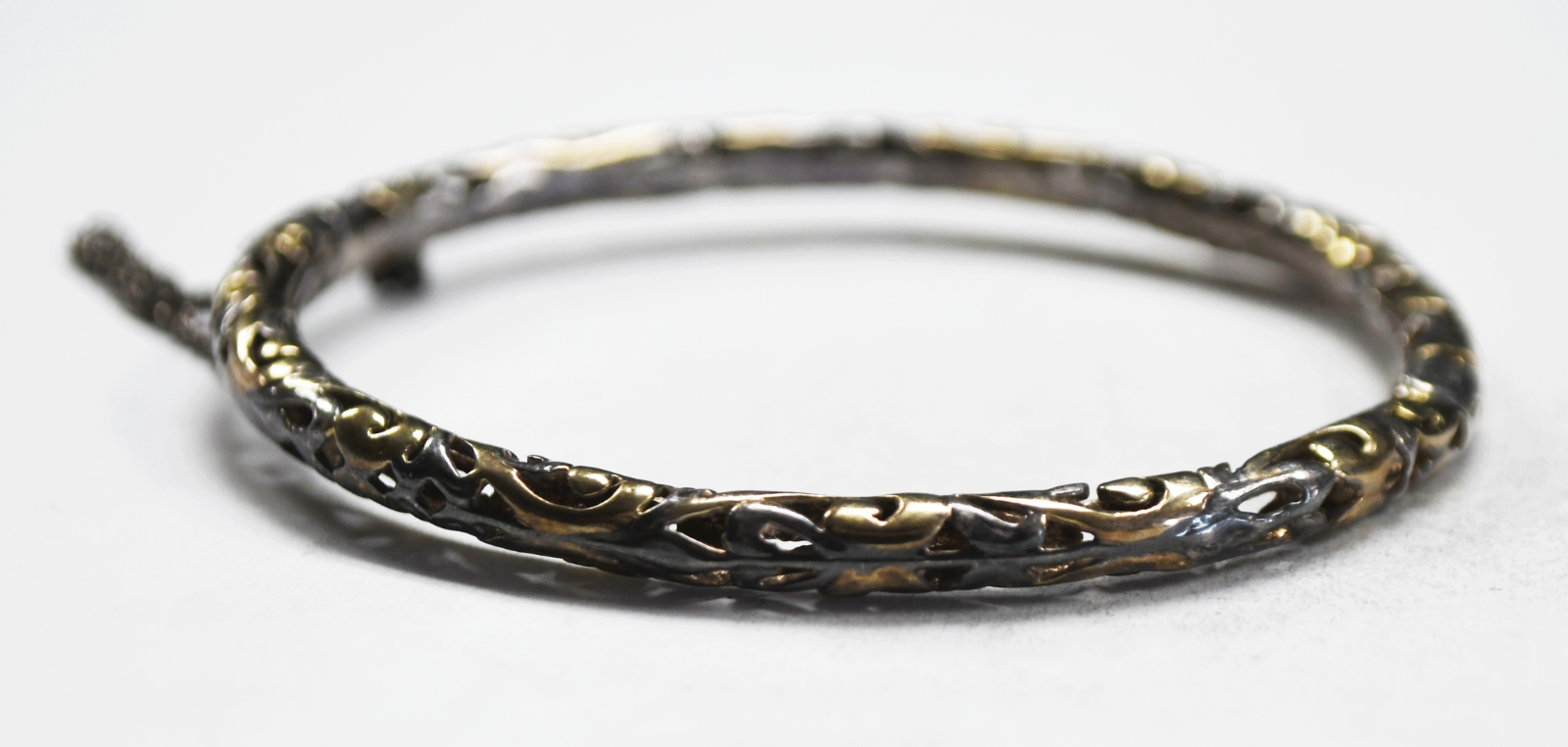 Sterling Silver Filigree 4mm Small Bangle Two Tone Oval Bracelet