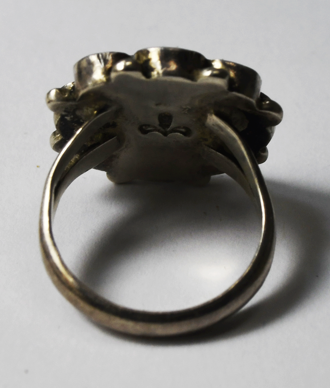 Sterling Silver Fleur Des Lis Signed MOP Inlay Flower Ring 21mm Size 8