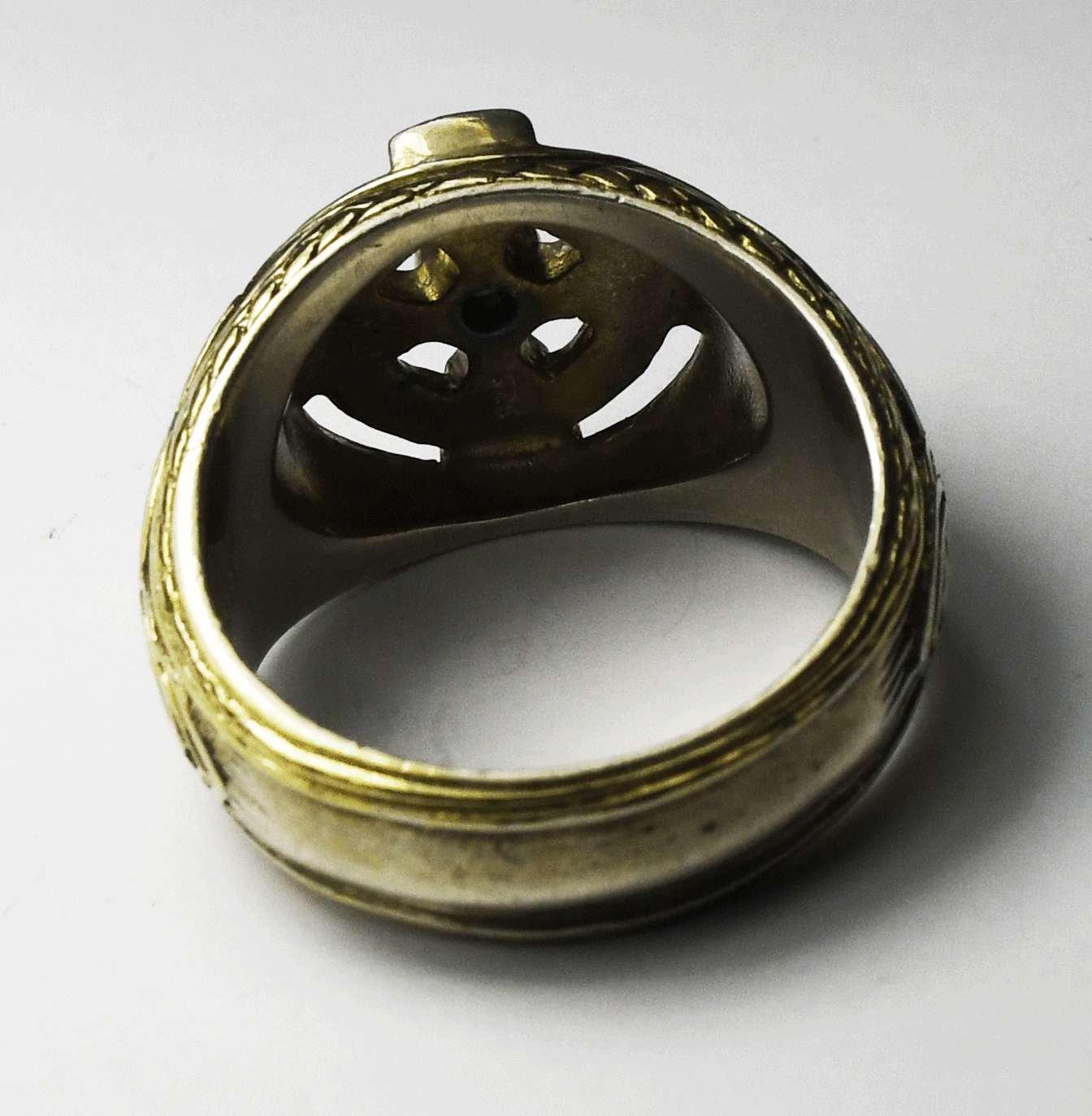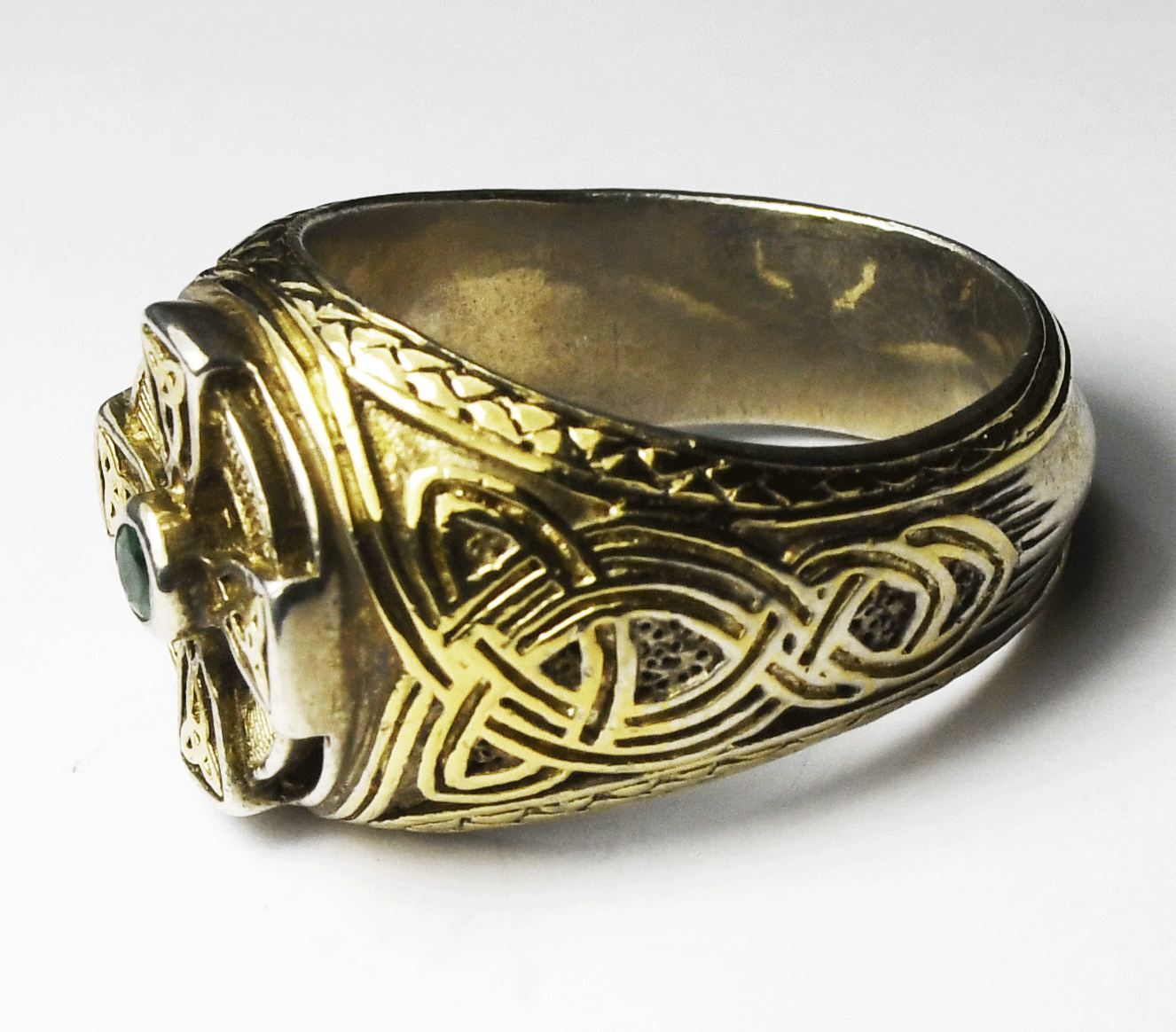 Sterling Silver FM Celtic Cross Emerald Two Tone Ring 17mm Size 11-3/4
