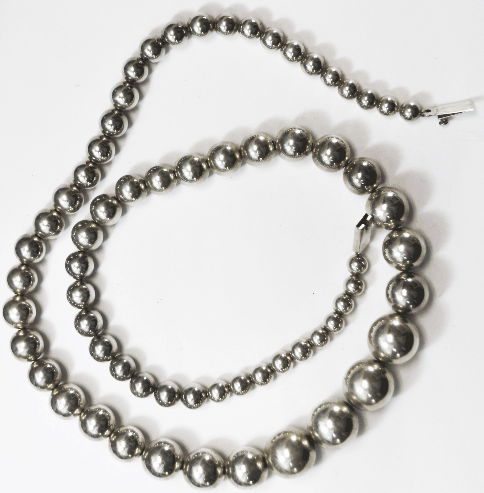 Sterling Silver Graduated Bead Necklace 8-18mm 30-1/4" 130g