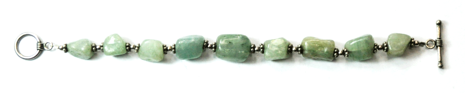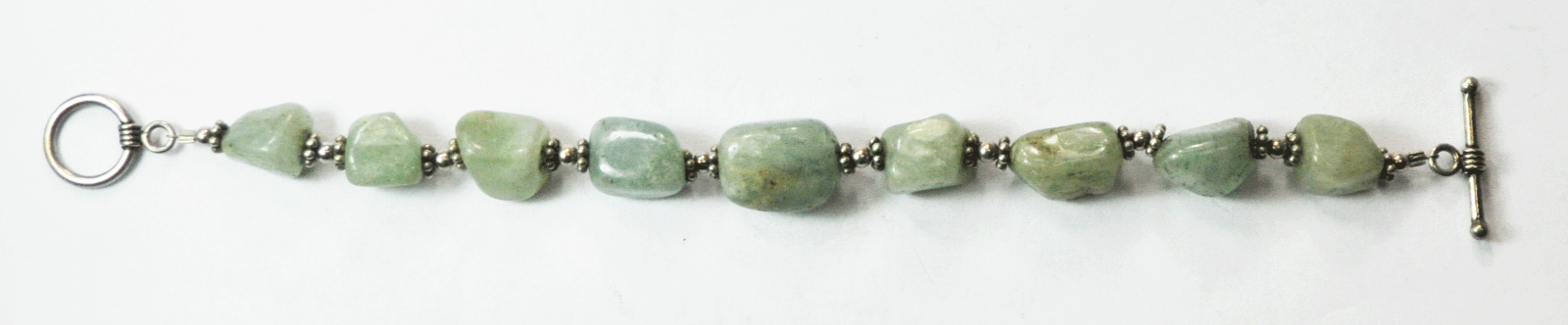 Sterling Silver Green Aventurine 11mm Bead Toggle Bracelet 7.5"