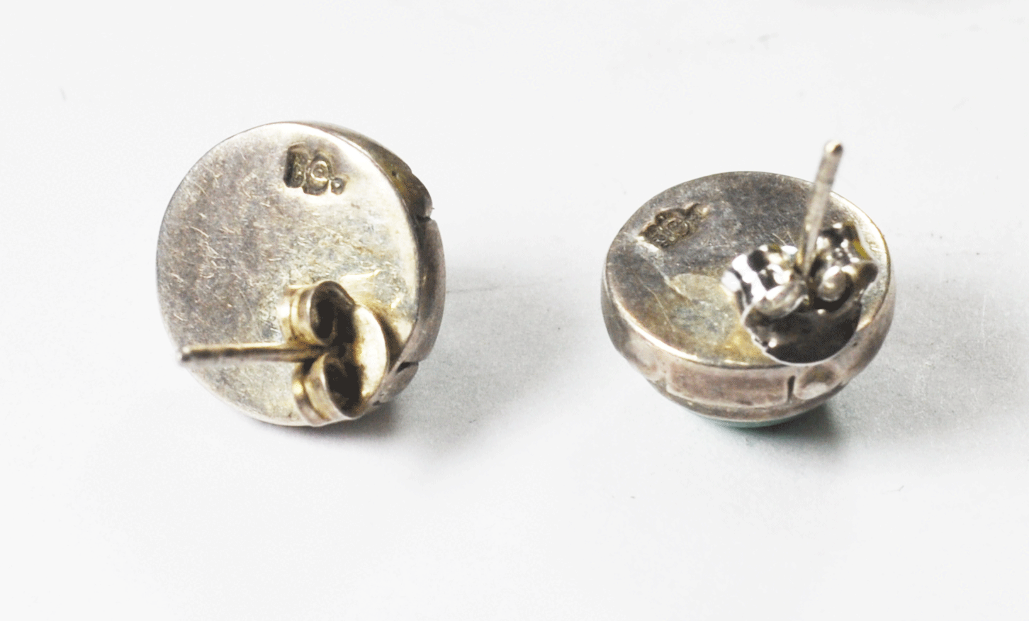 Sterling Silver Green Malachite Stud Earring Round Domed 14mm