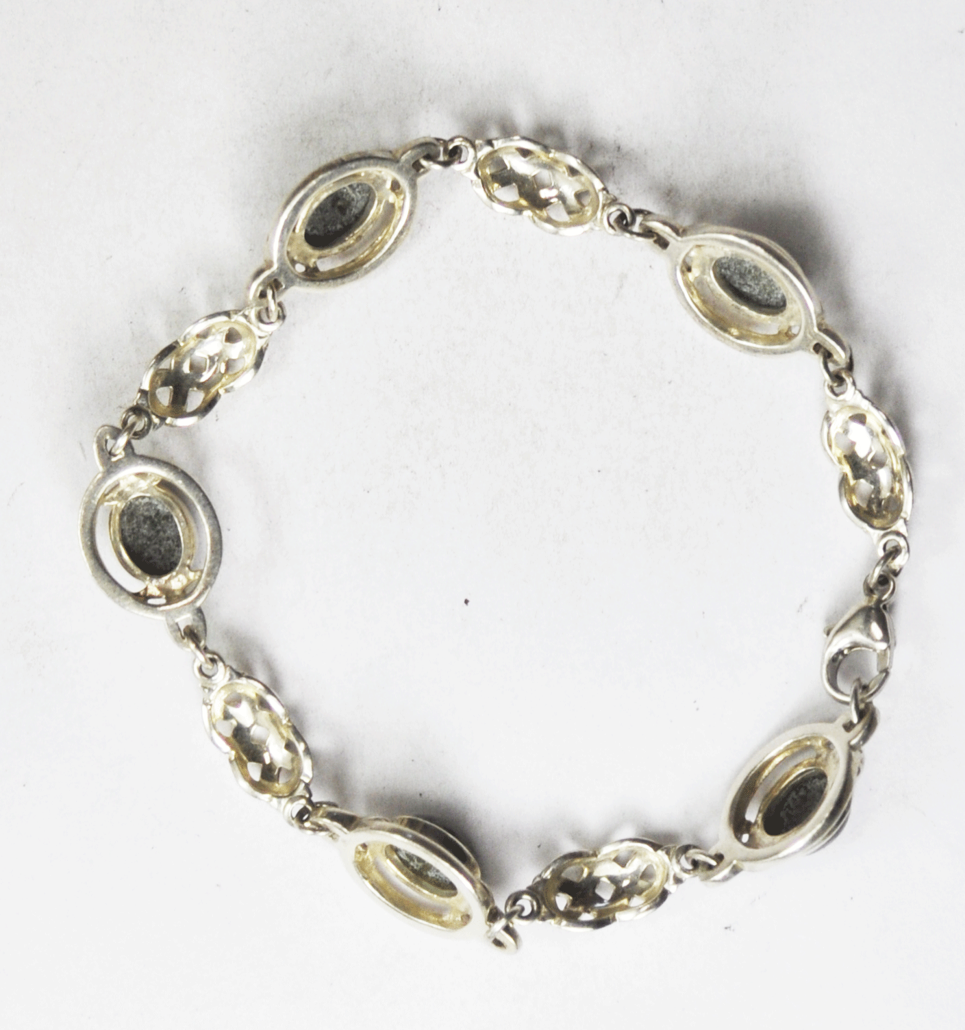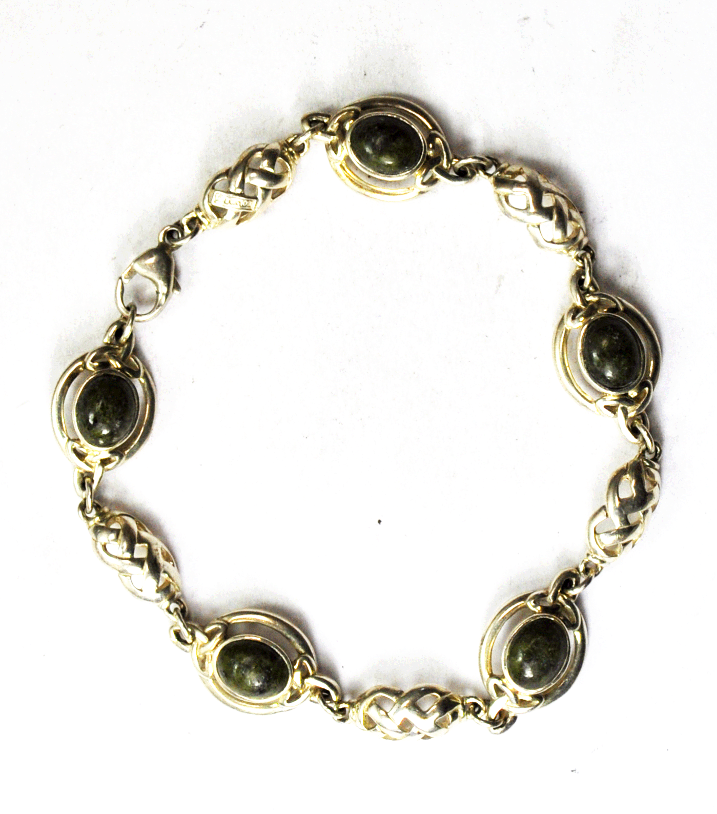 Sterling Silver Green Oval Serpentine Basket Weave Link Bracelet 12mm 7-3/4"