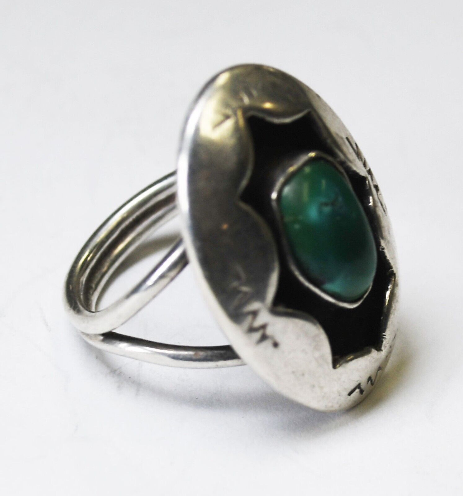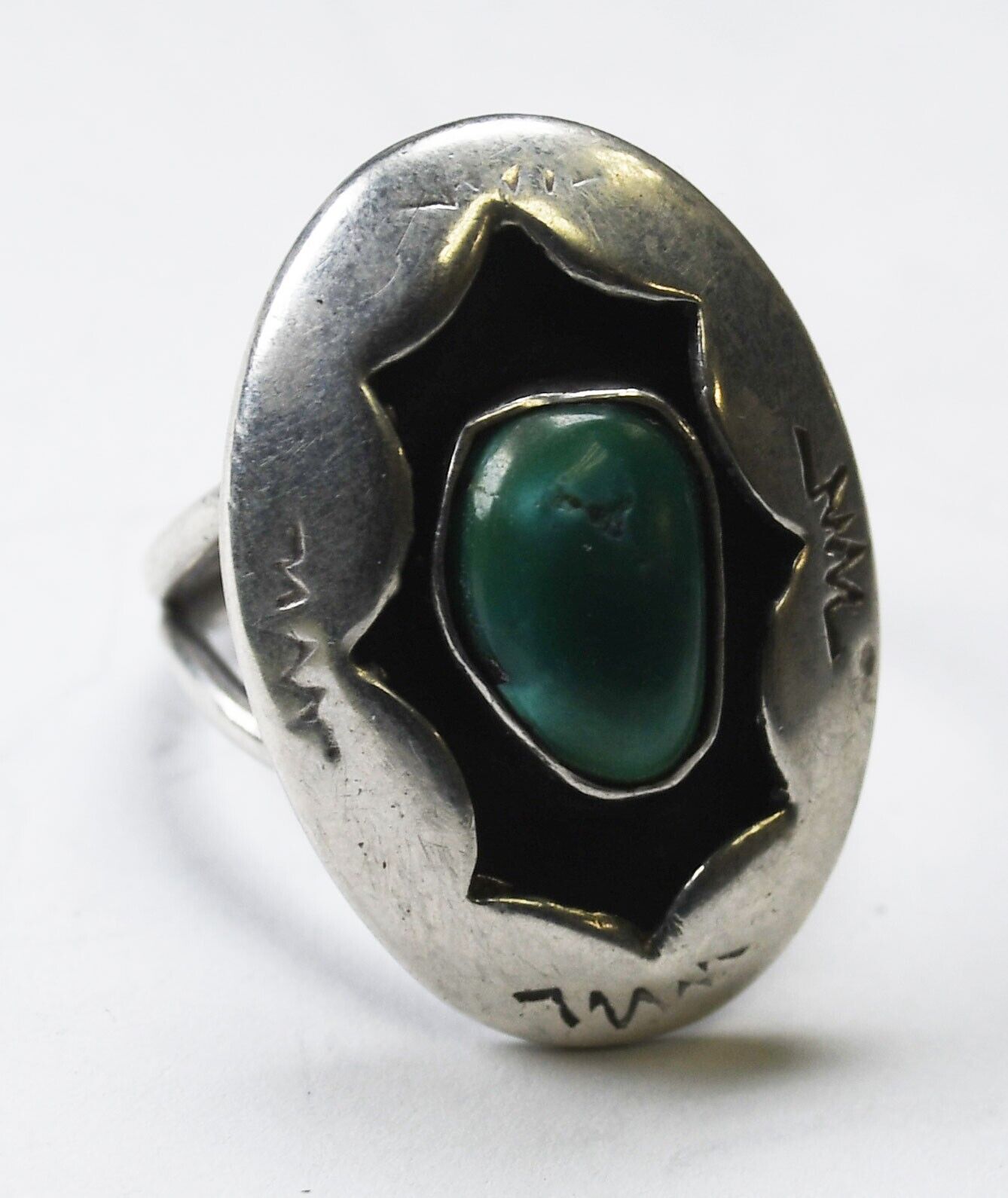 Sterling Silver Green Turquoise Shadow Box Ring 28mm Size 6.5