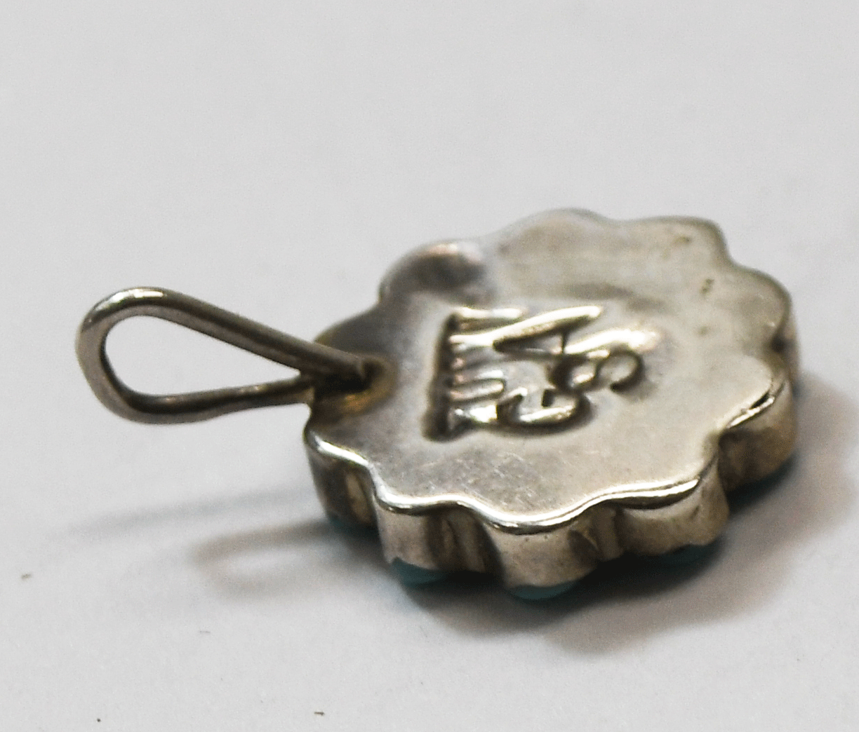 Sterling Silver GSA Teardrop Turquoise Pinwheel Pendant 22mm x 15mm
