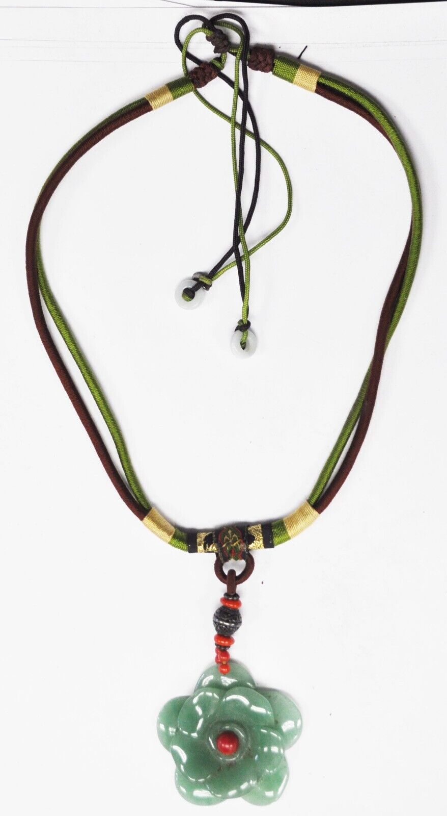 Sterling Silver GSJ 48mm Jade Flower Coral Bead Cord 29.5" Necklace