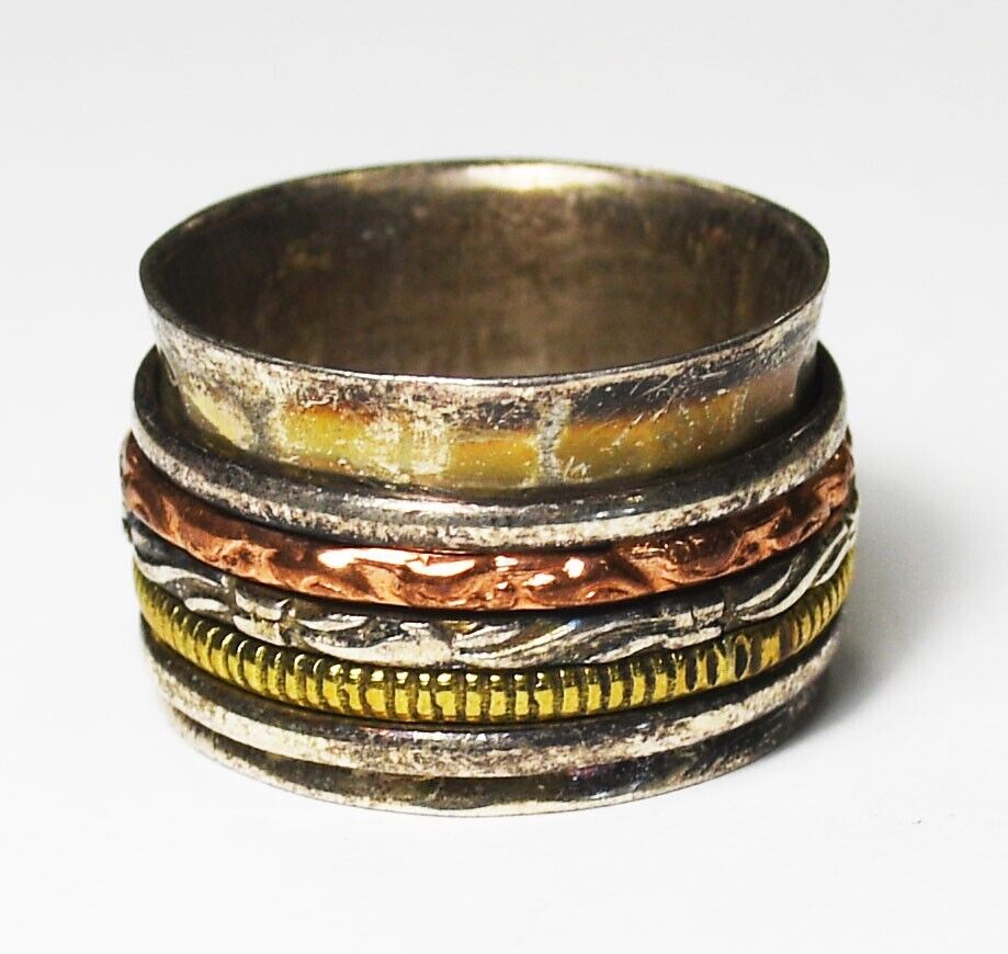 Sterling Silver Hammered 5 Spinner Band Ring 14mm Size 9