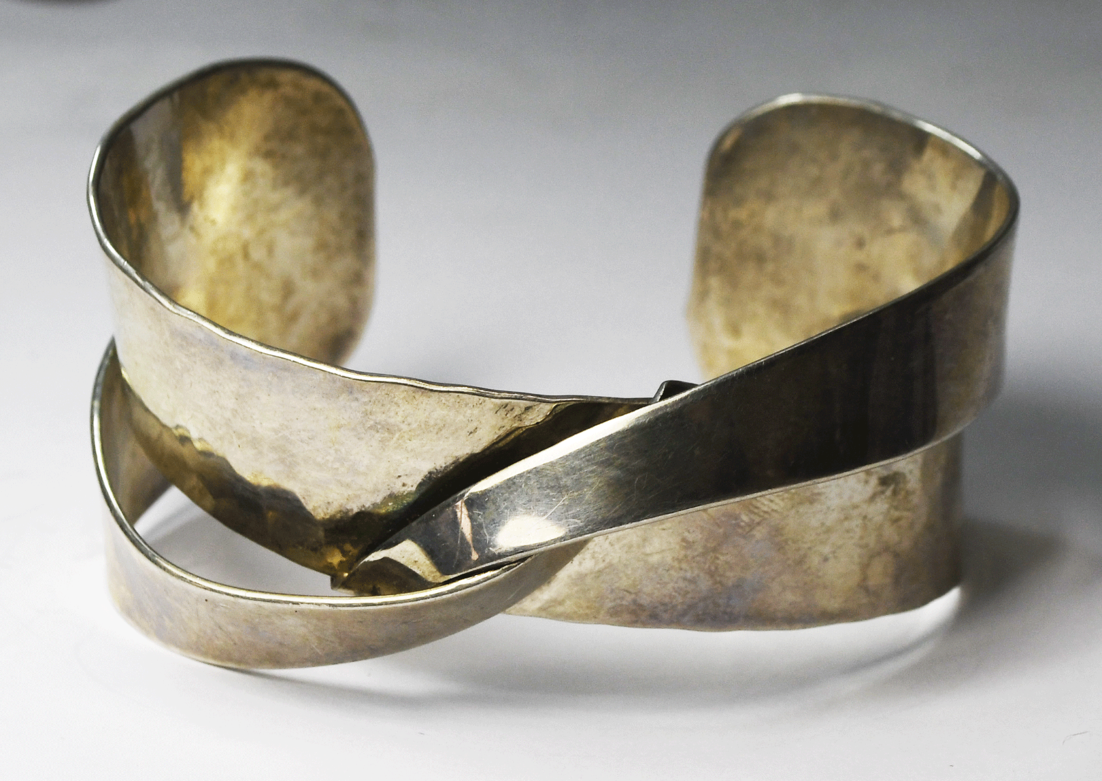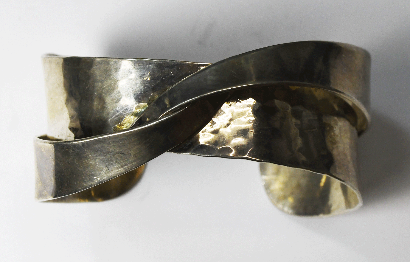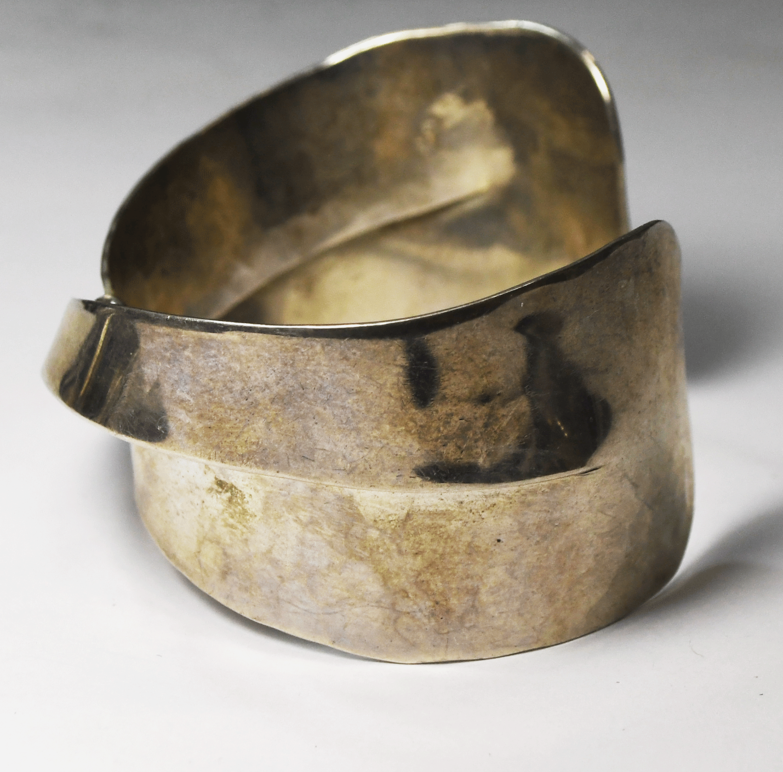 Sterling Silver Hammered Overlapping Twist Cuff Bracelet 18-33mm 7" Wrist 49g
