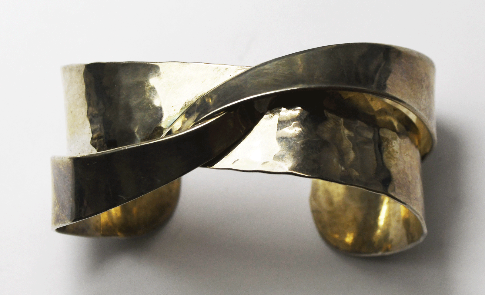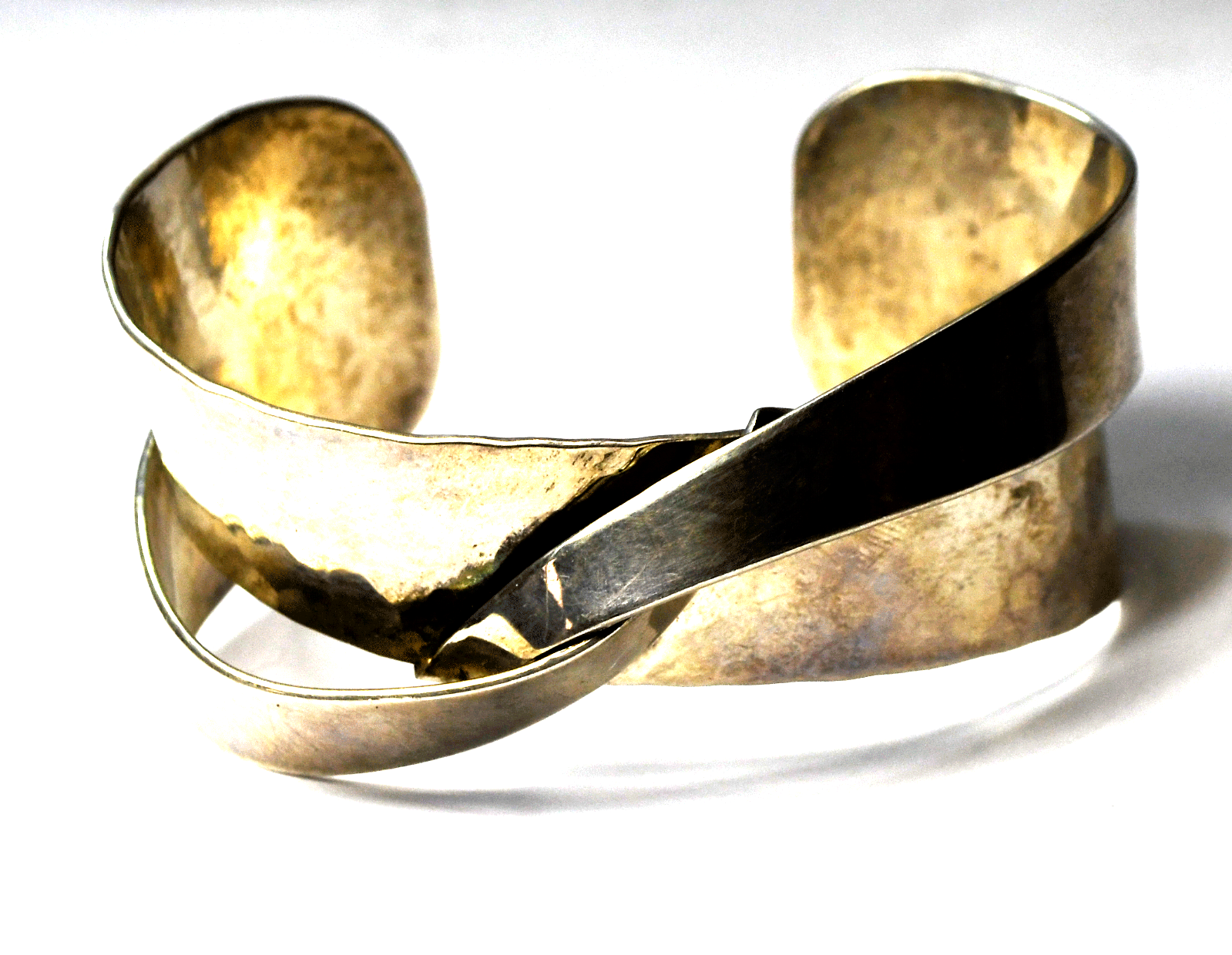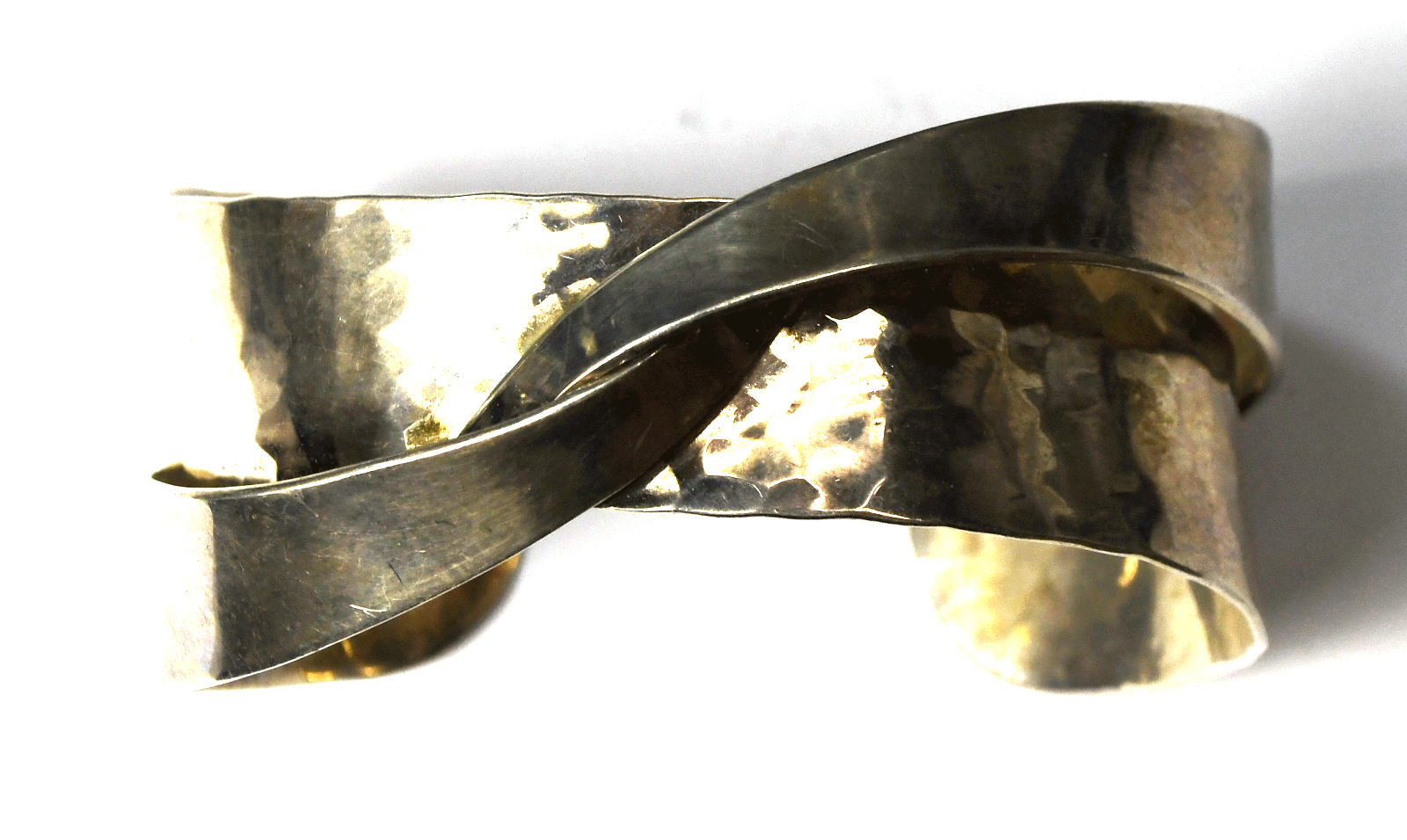 Sterling Silver Hammered Overlapping Twist Cuff Bracelet 18-33mm 7" Wrist 49g