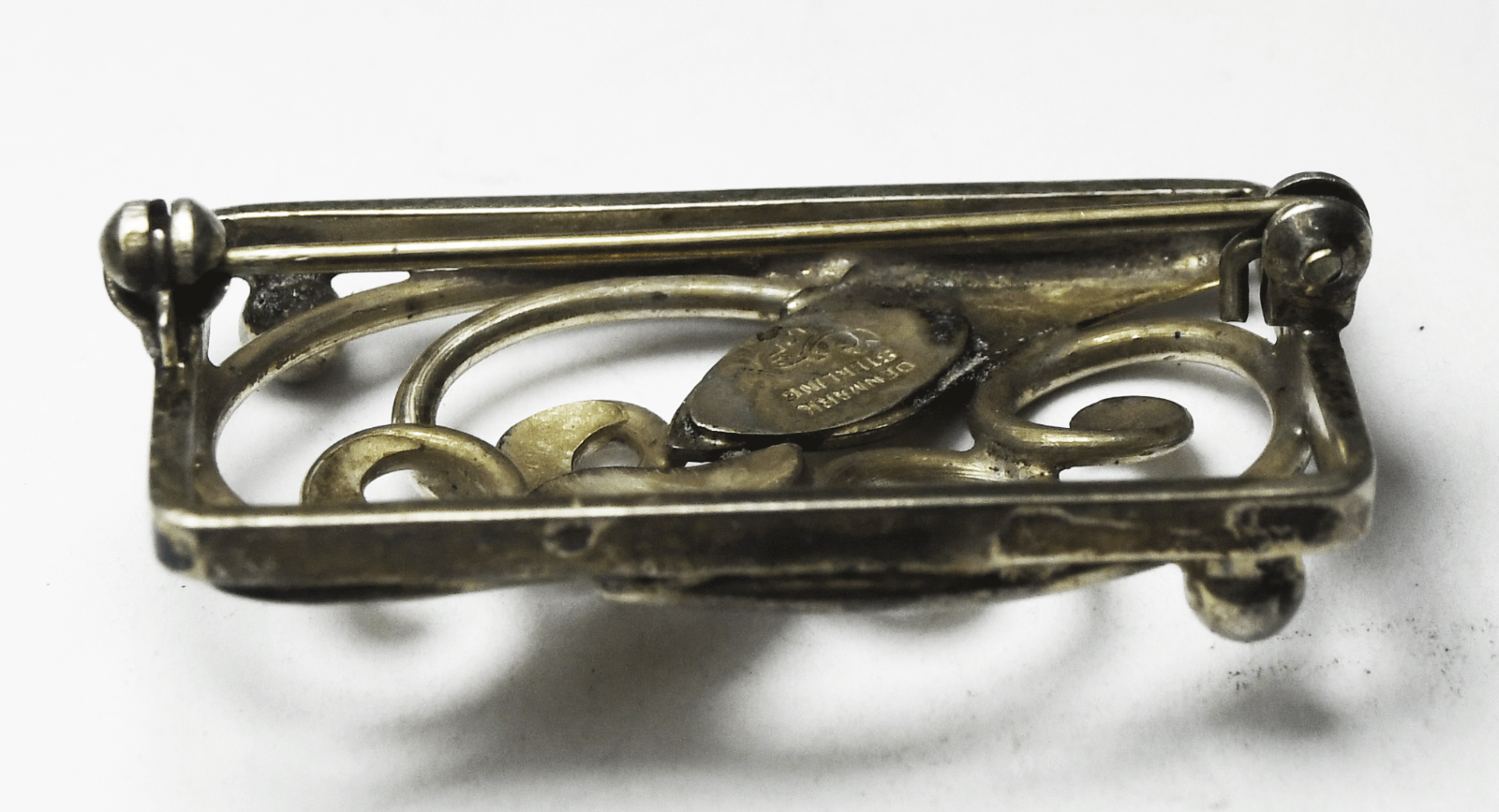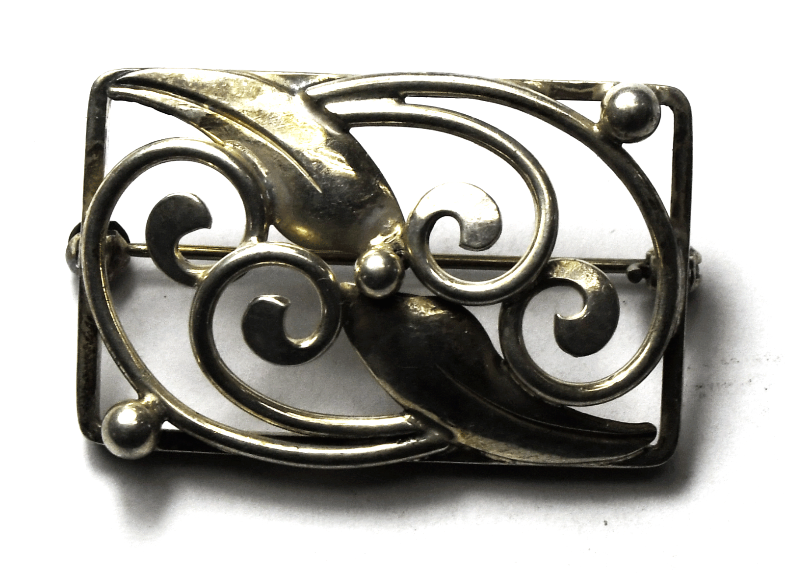Sterling Silver Hans Jensen Filigree Brooch Rectangle Swirl Pin 37mm x 23mm