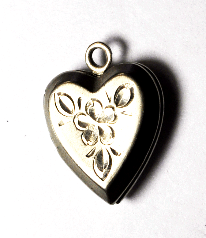 Sterling Silver Heart Charm Hinged Locket Pendant Engraved Flowers 18mm