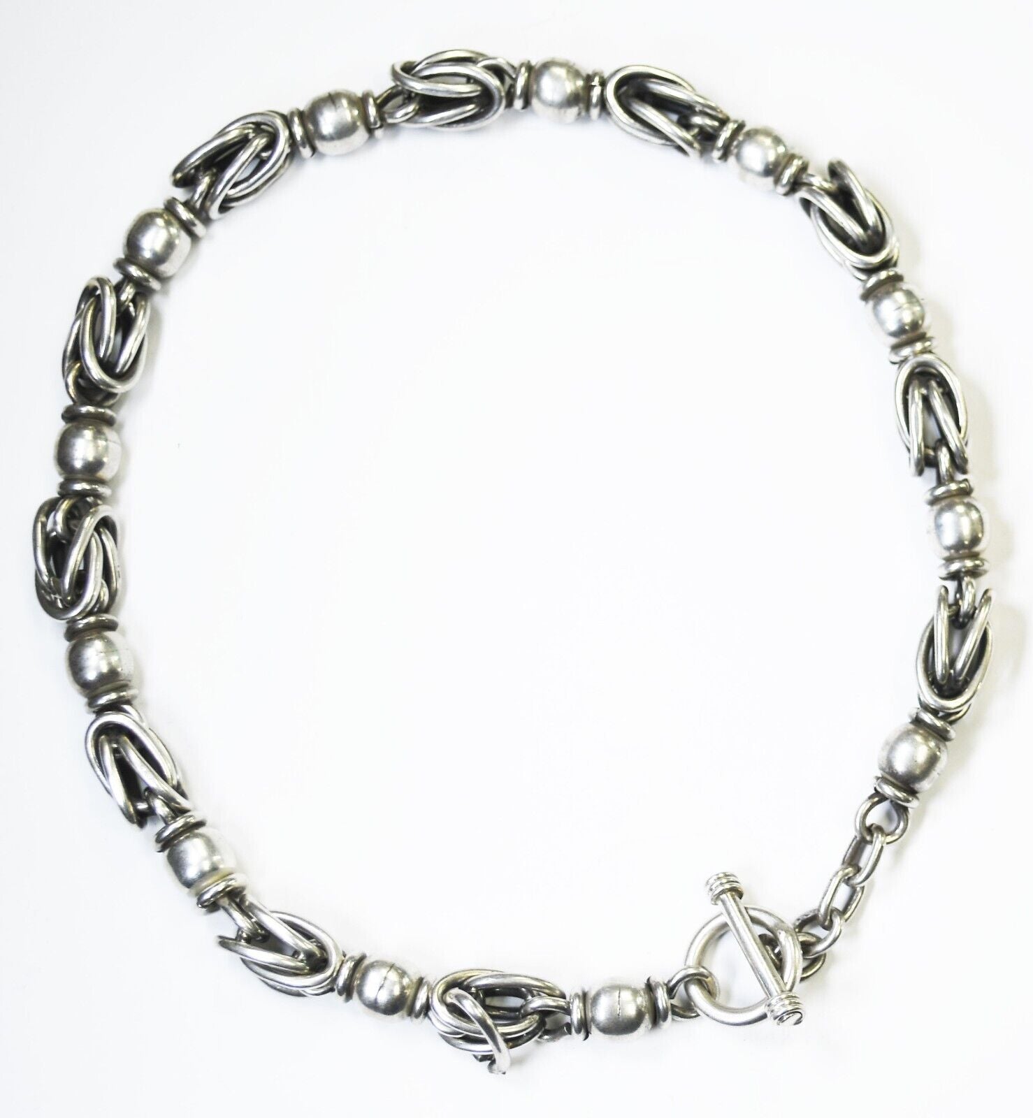 Sterling Silver Heavy 131g Knotted Hoop Link Toggle Necklace 11mm 18.25"