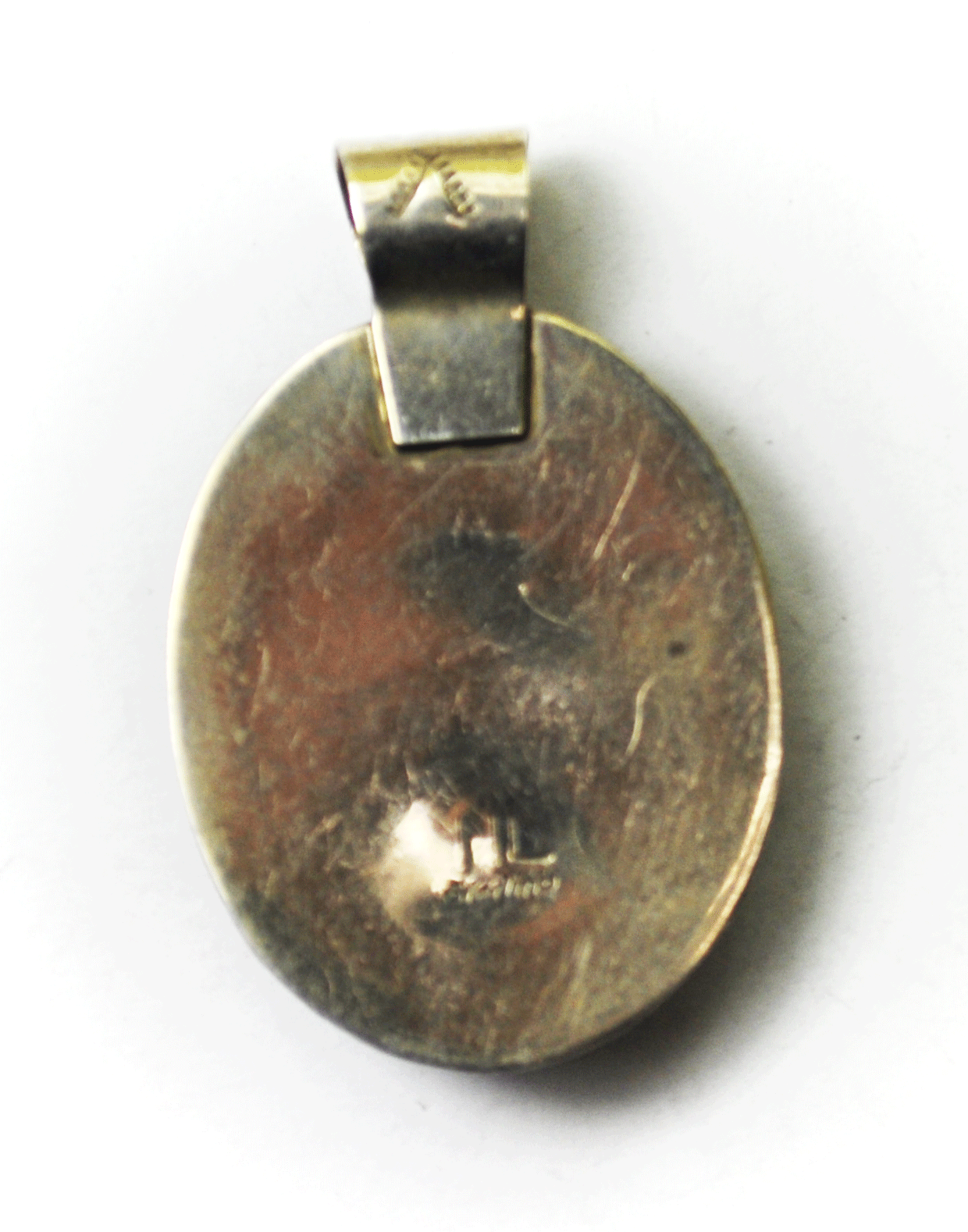 Sterling Silver Helen Long Oval Green Malachite Etched Pendant 1-3/4" x 29mm
