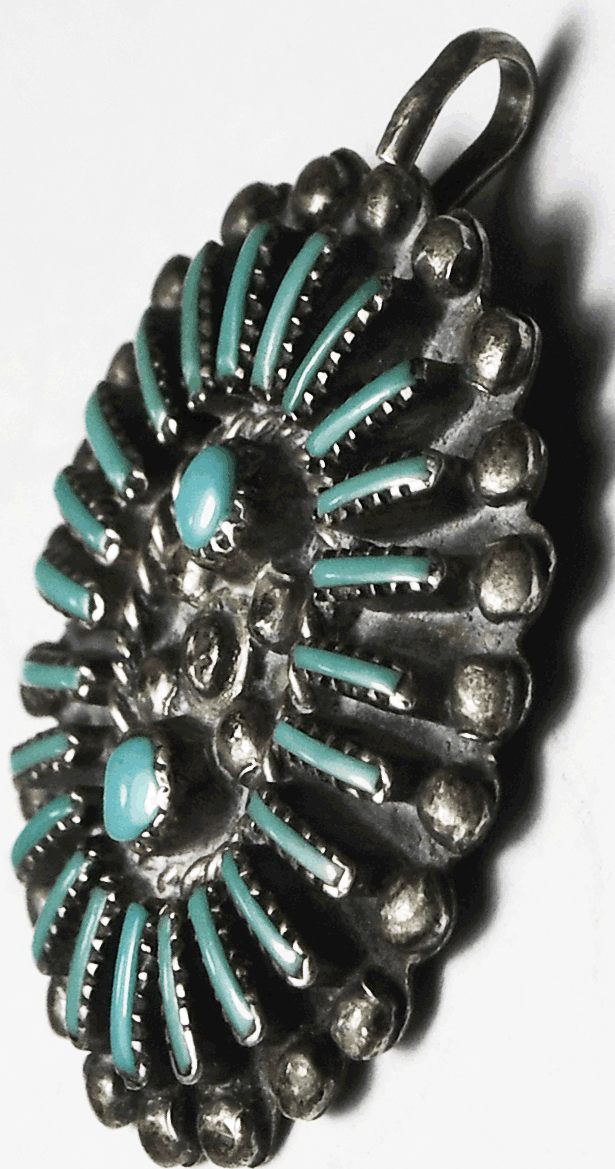 Sterling Silver HM Petit Point Turquoise Oval Pendant 24mm x 22mm