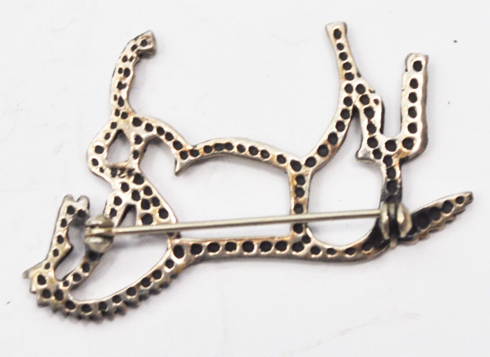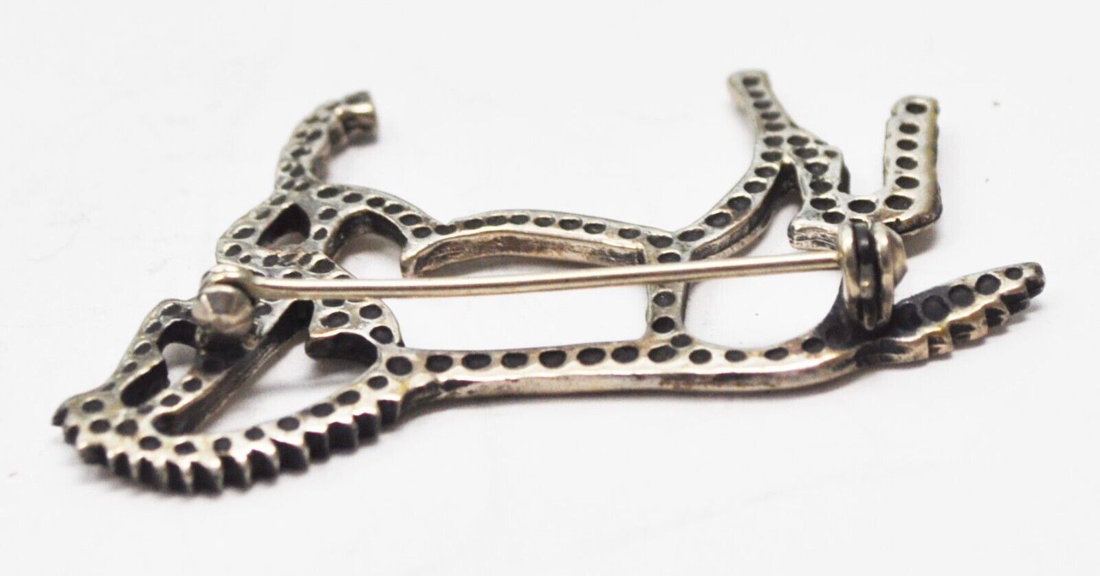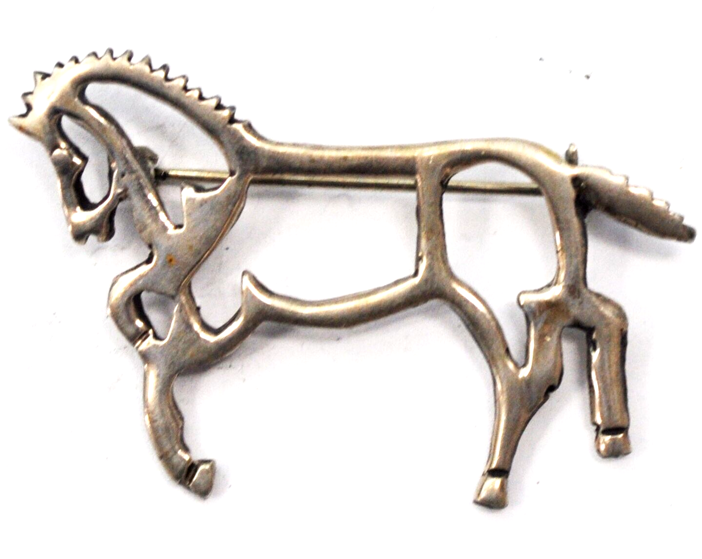 Sterling Silver Horse Outline Brooch Pin Dotted Reverse 52mm x 33mm