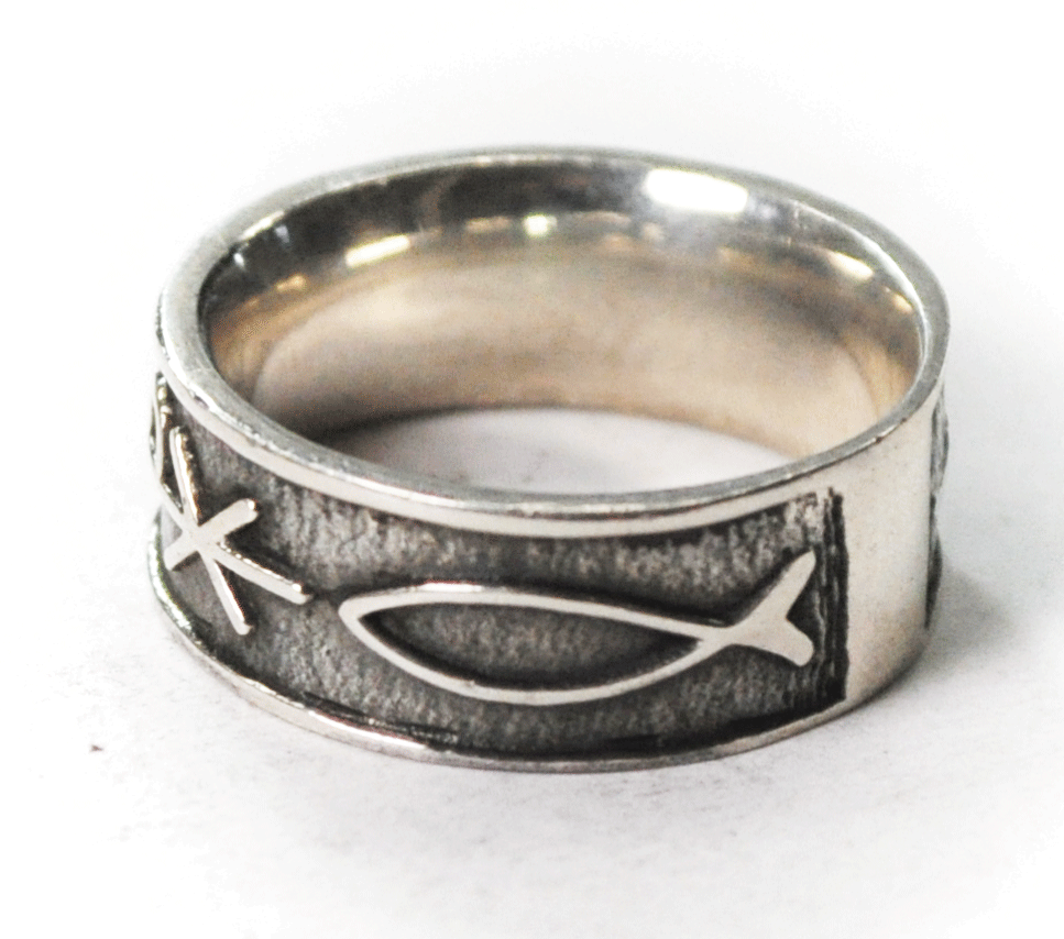 Sterling Silver Ichthys Dove Alpha Omega Chi Rho Storyteller Band 9mm Size 8