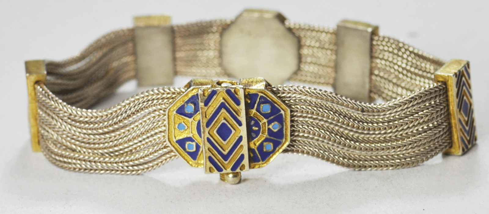 Sterling Silver India Blue Enamel 2-Tone 7 Strand Bracelet 14mm 7-1/4"
