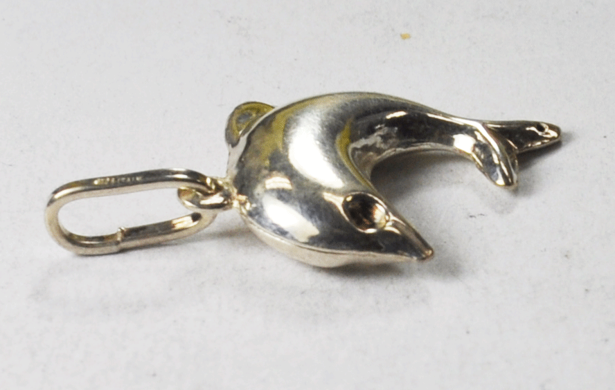 Sterling Silver Italy Puffy Jumping Curved Dolphin Pendant 2.5g 1-1/2" x 22mm