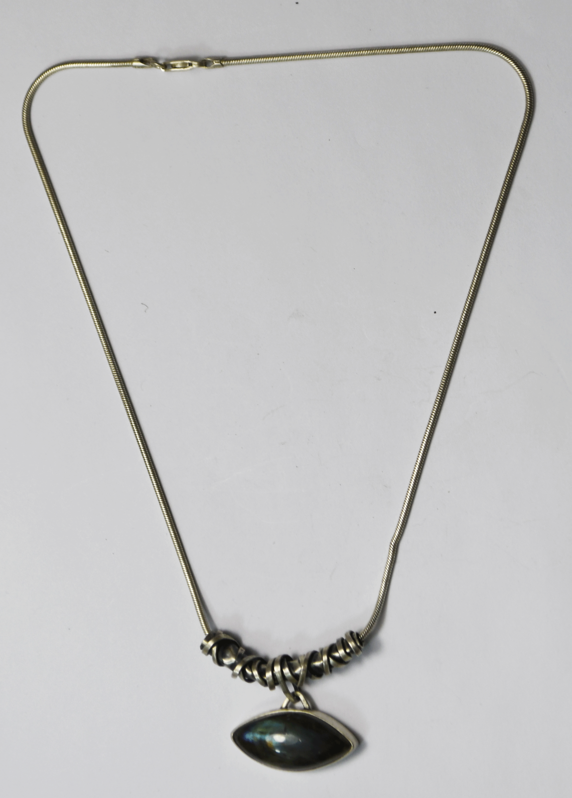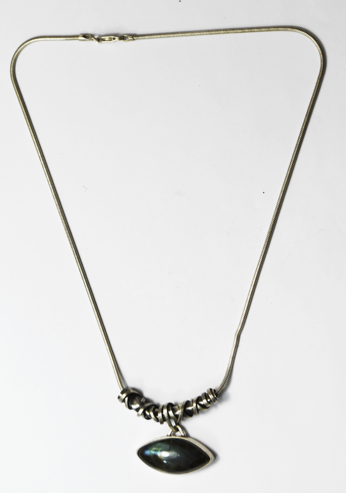 Sterling Silver Ivey Labradorite Slider 31mm Pendant 31mm 15.5" Necklace