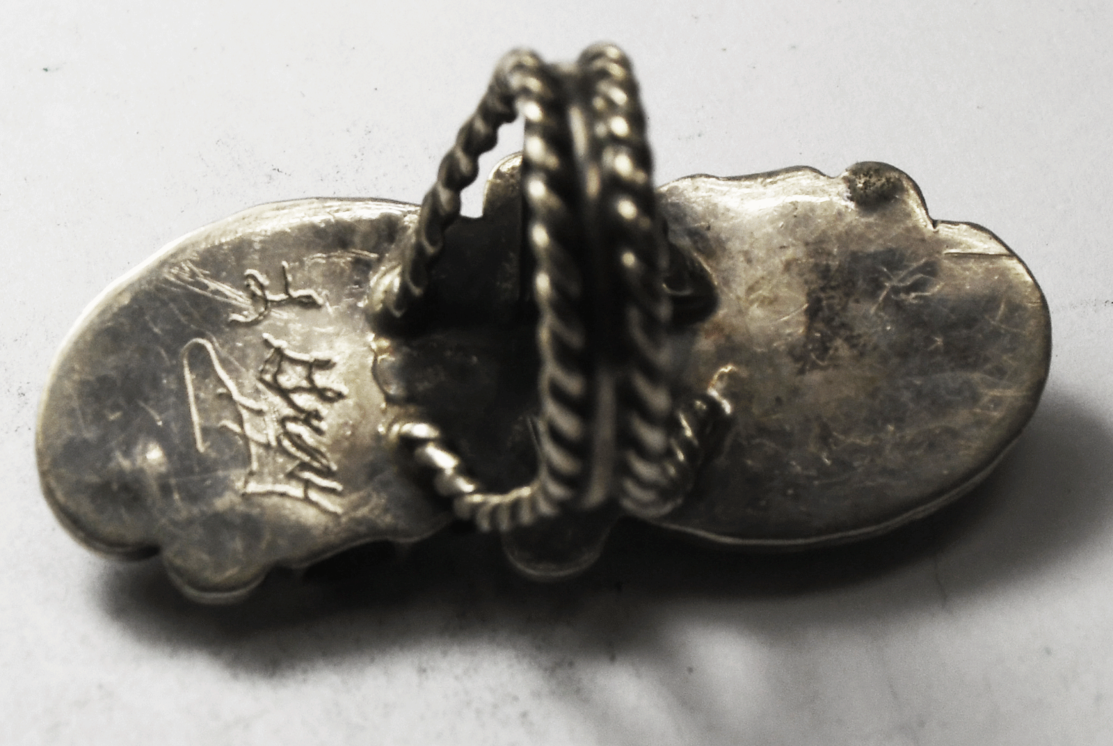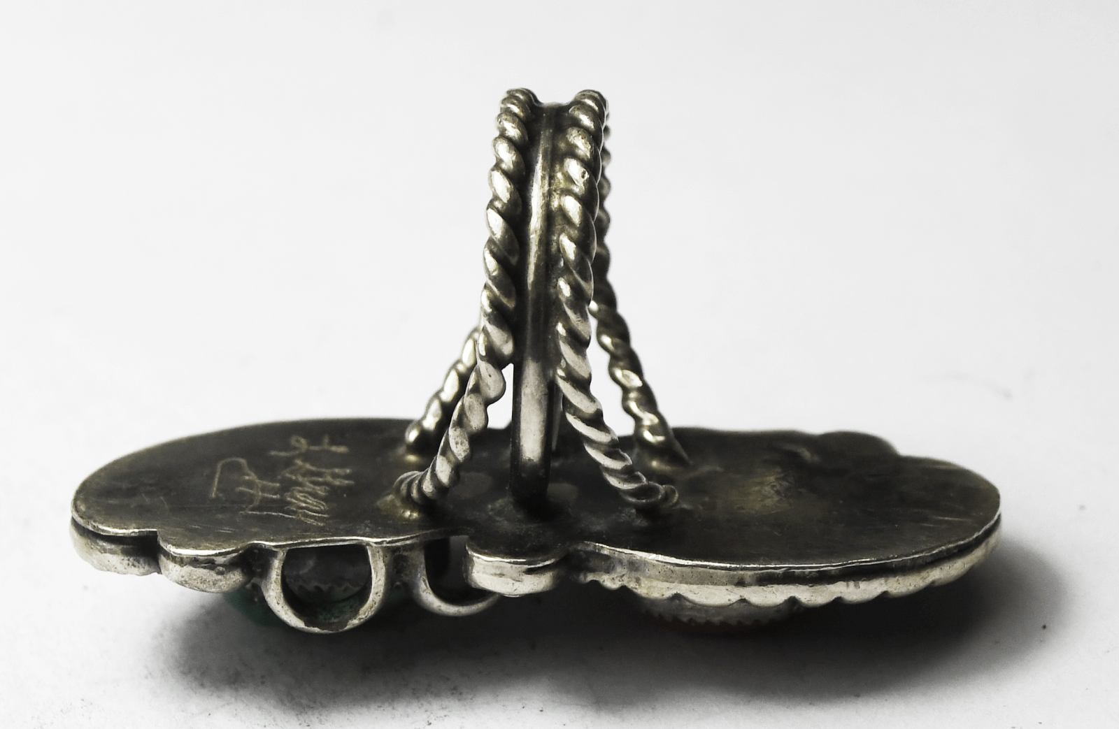 Sterling Silver J Gray Turquoise & Coral Elongated Ring 48mm Size 7