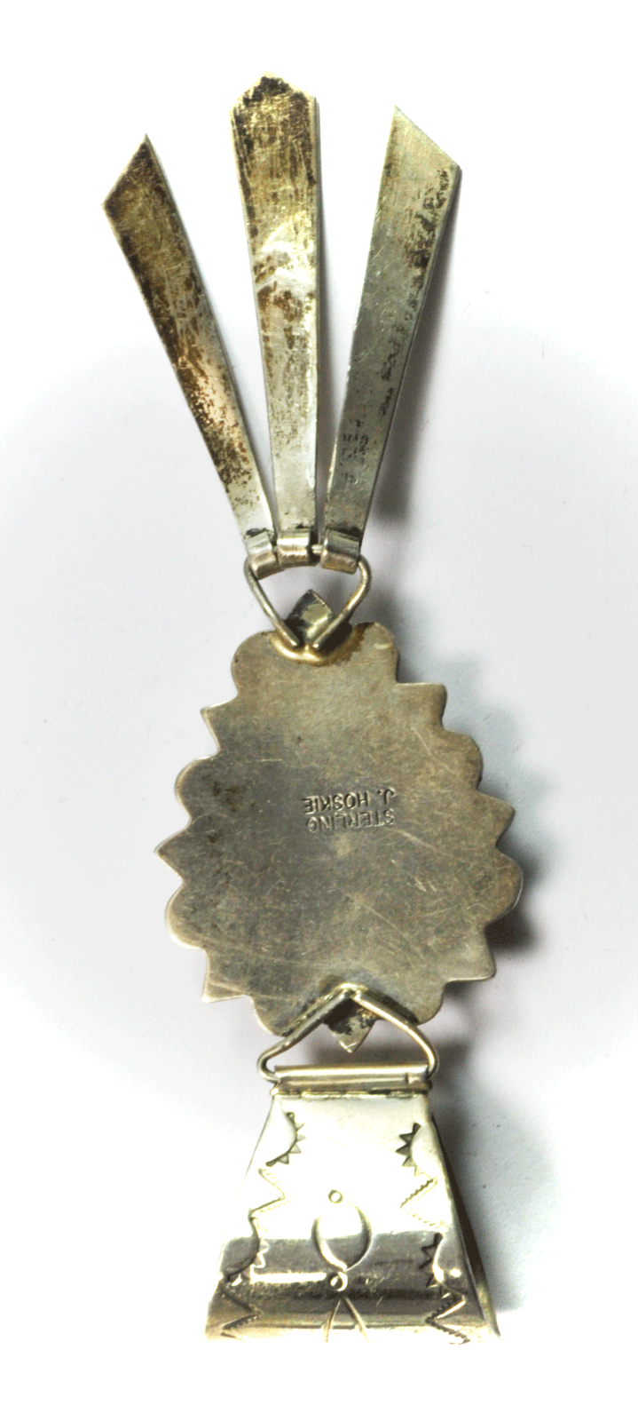 Sterling Silver J. Hoskie Turquoise Inlay 4.25" Dangle Pendant Large Etched Bale