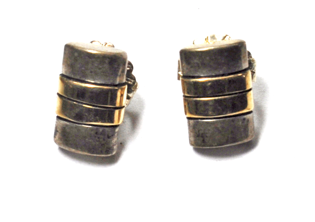 Sterling Silver J Nez 14k Two Tone Watch Link Earrings 8mm x 13mm