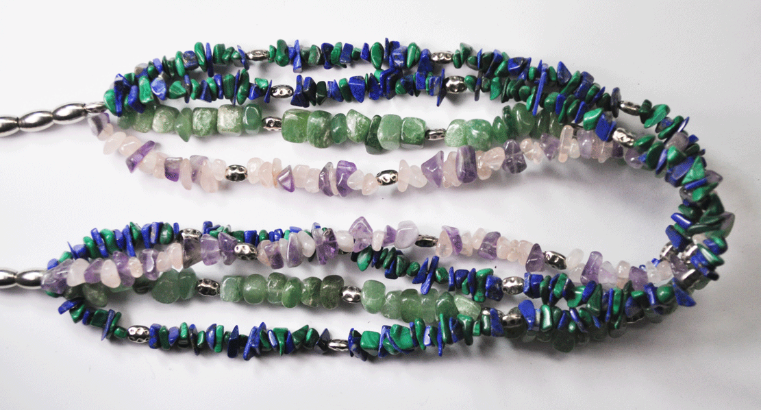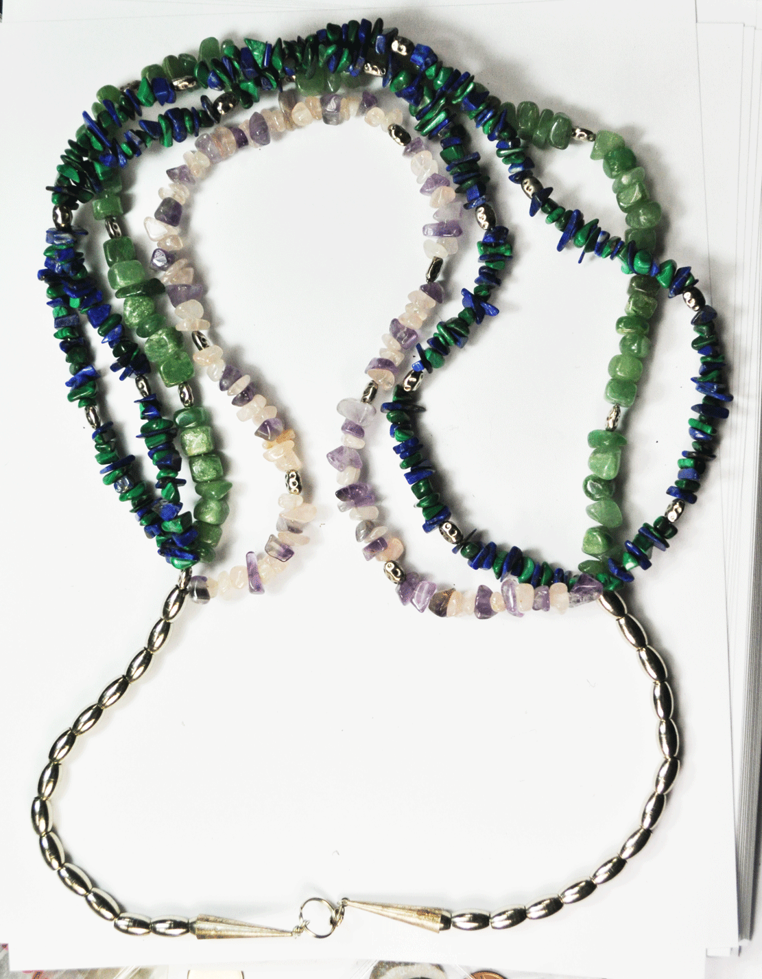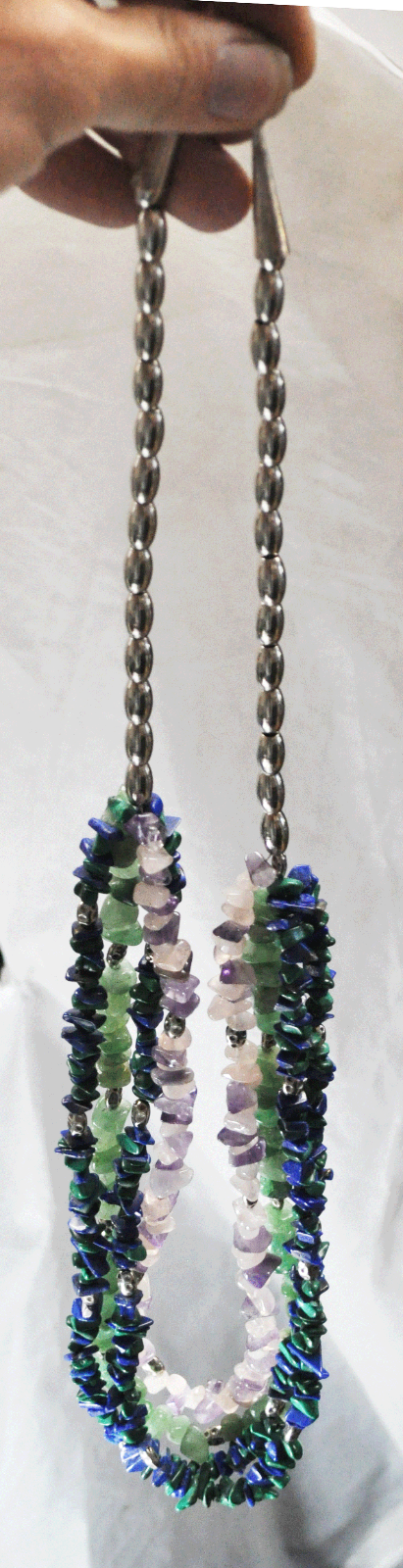 Sterling Silver Jade Malachite Lapis Bead 4 Strand Necklace Heavy 7ozt. 30"