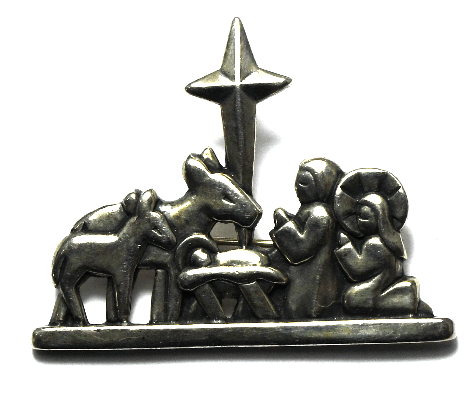 Sterling Silver James Avery Nativity Brooch Pin Manger 40mm x 31mm