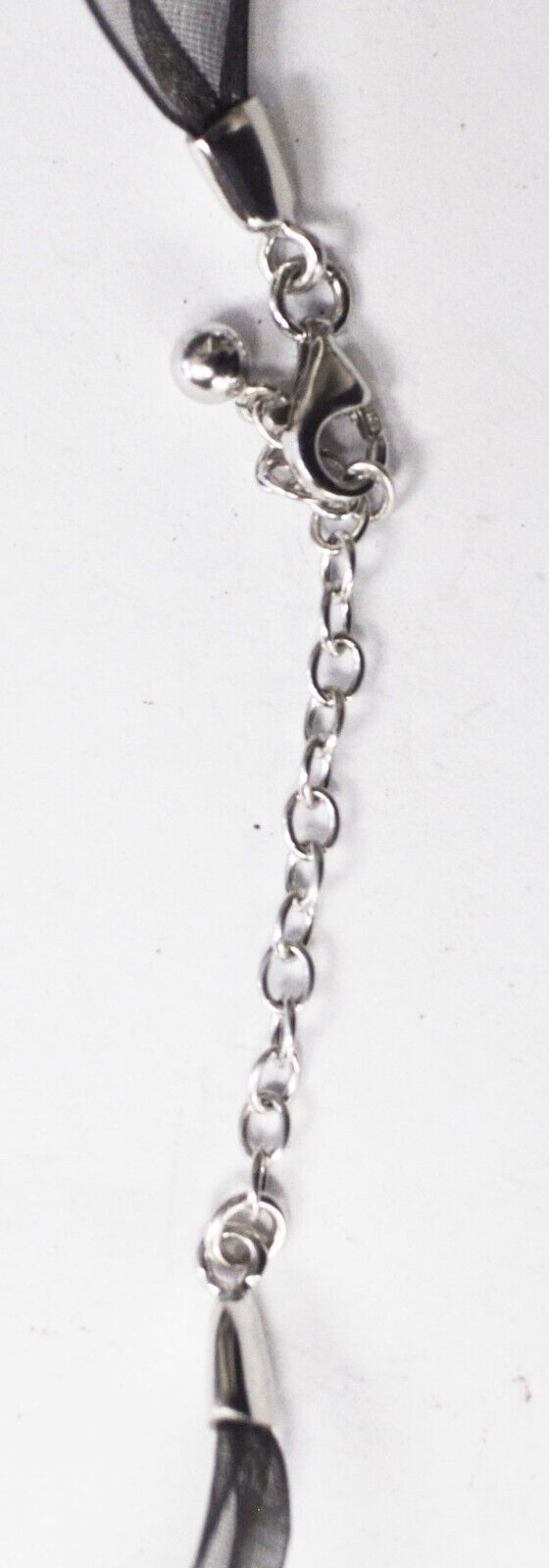 Sterling Silver JCM Jacmel Mauritius Chain & Clasp Black Ribbon Necklace 18"