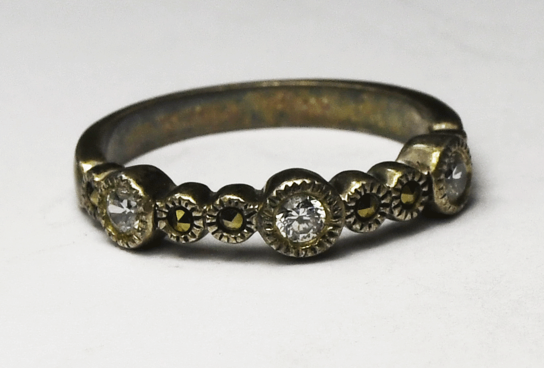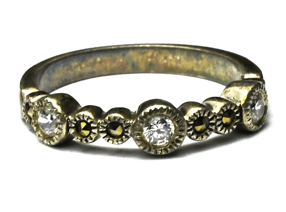 Sterling Silver Judith Jack Marcasite CZ Ring 4mm Band Size 7