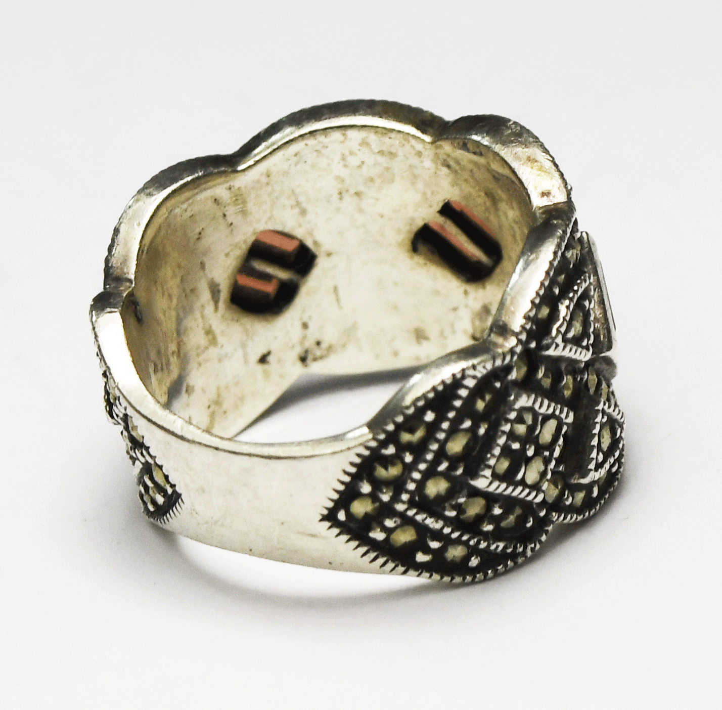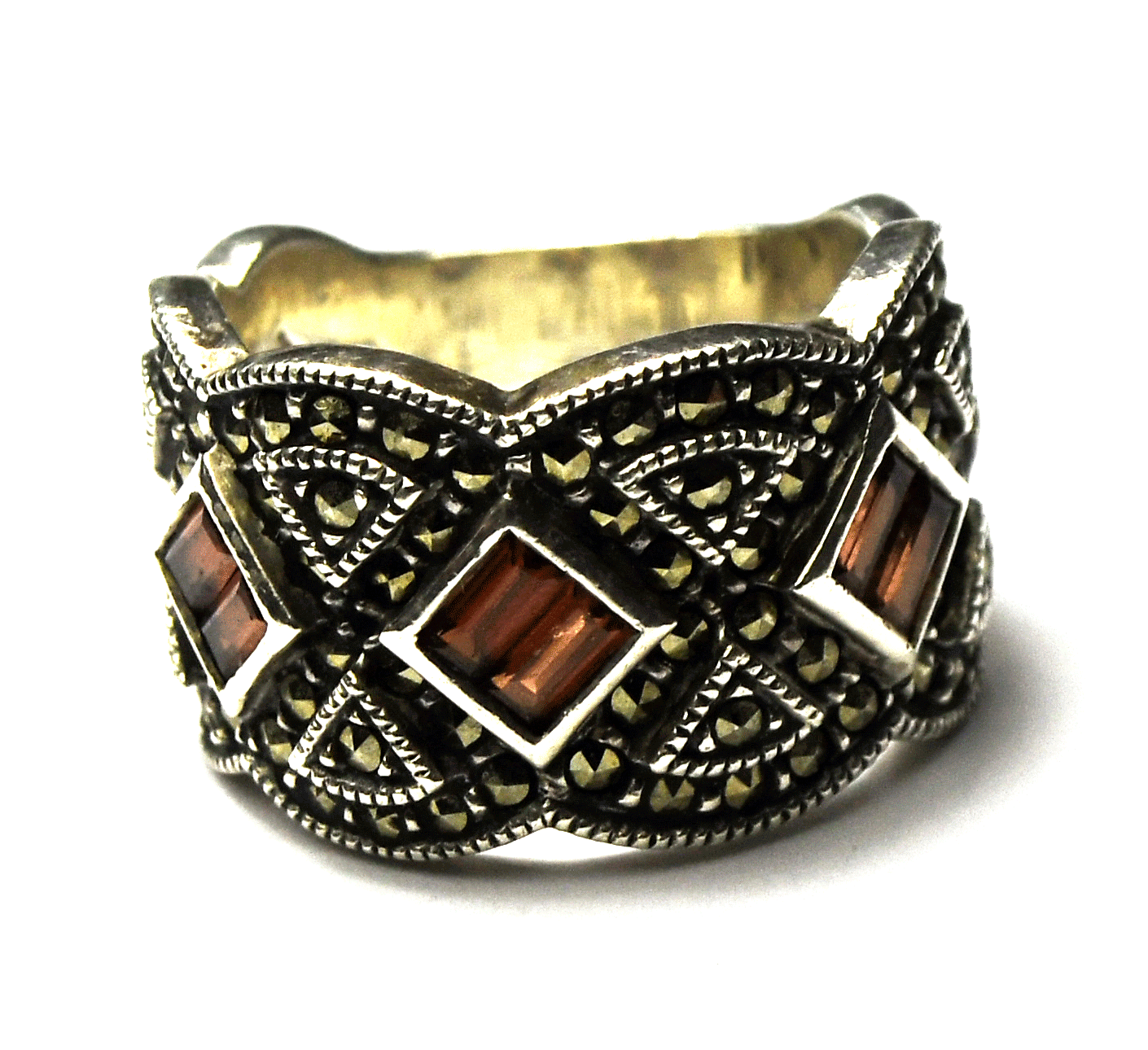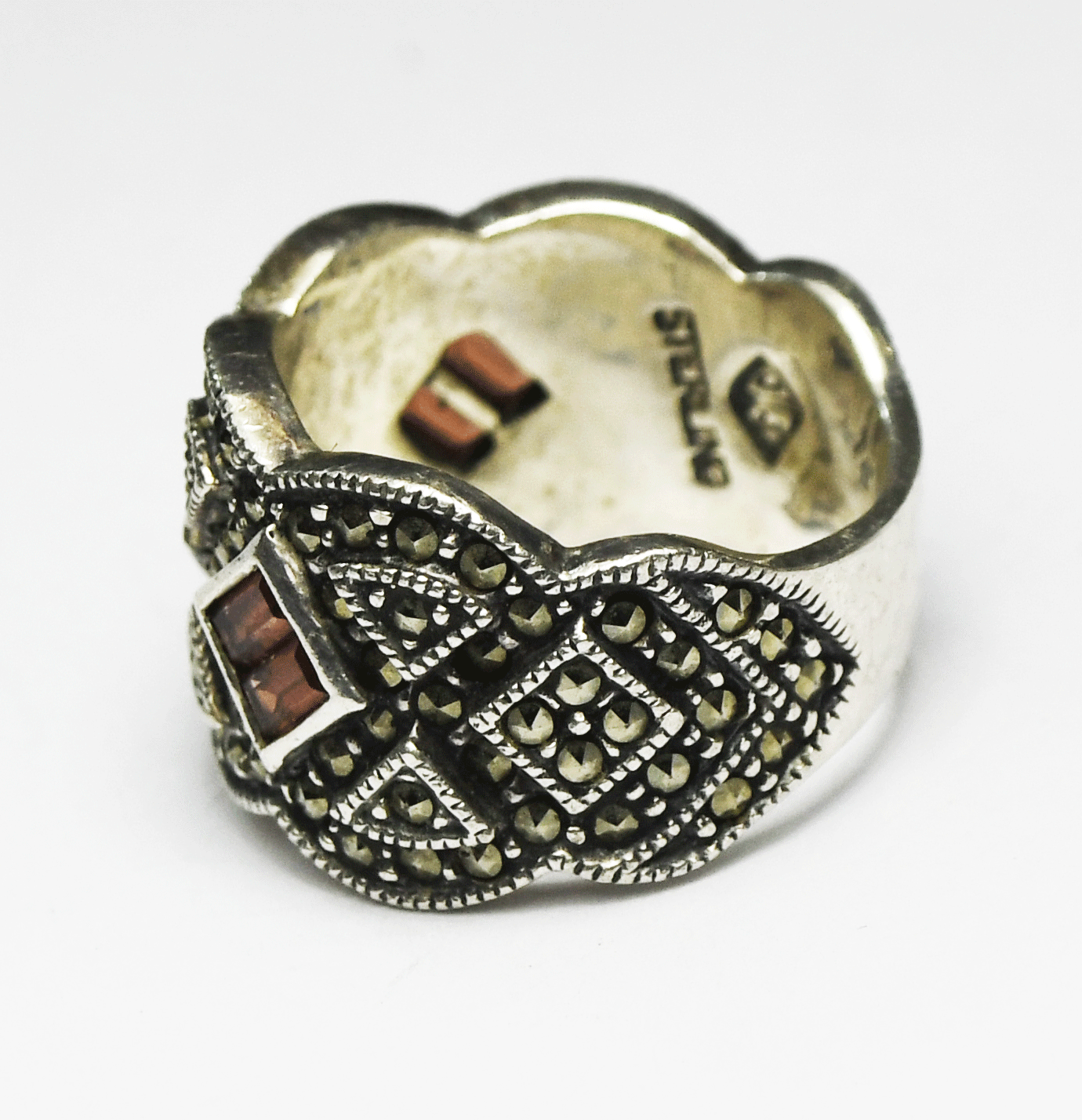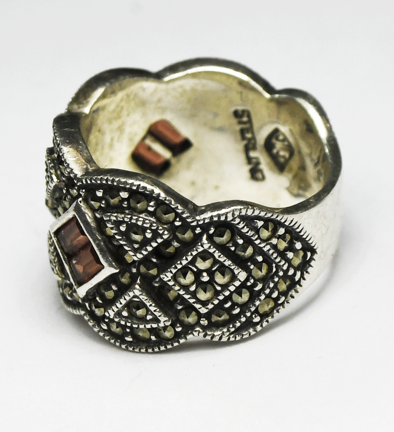 Sterling Silver Judith Jack Marcasite Garnet Ring 14mm Band Size 7