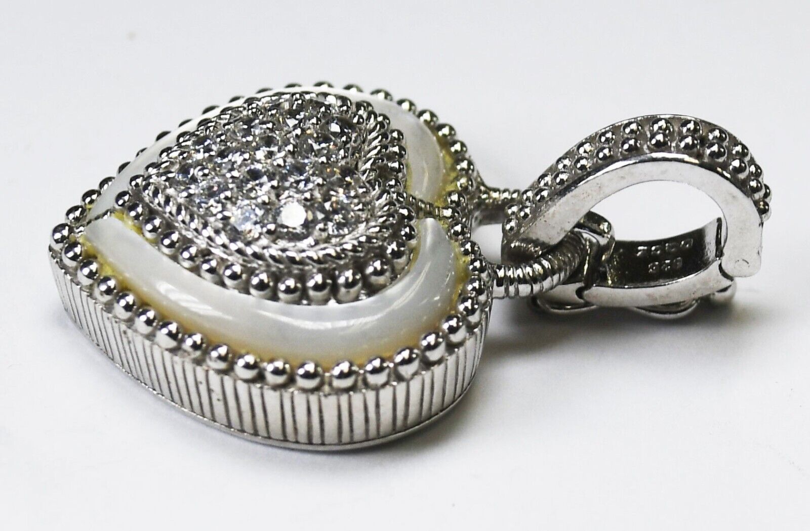 Sterling Silver Judith Ripka CZ Heart Pendant 36mm x 23mm