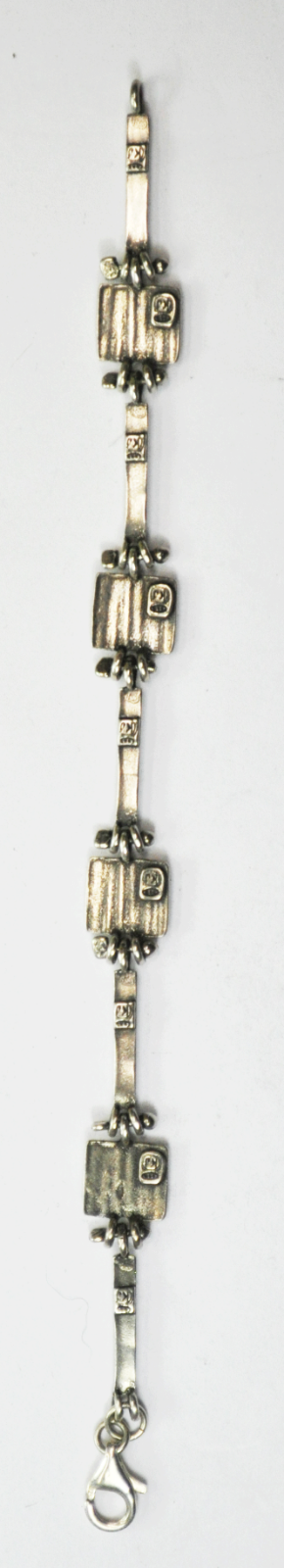 Sterling Silver KJ 925 Stamped 9 Times Square Stripe Link Bracelet 11mm 7.5"